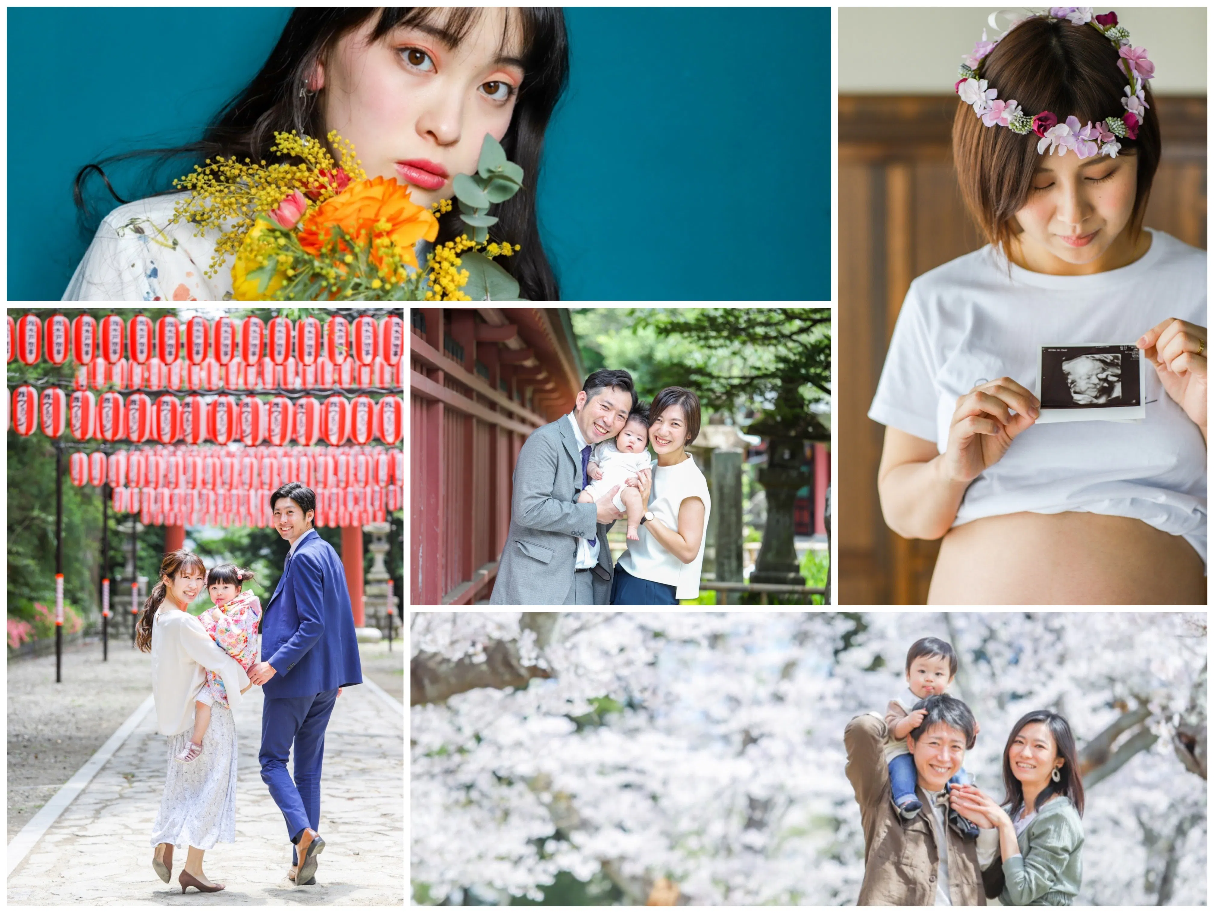 家族写真、女性のプロフィール写真、七五三、マタニティフォトなど、さまざまなカテゴリーの写真を撮影しています。