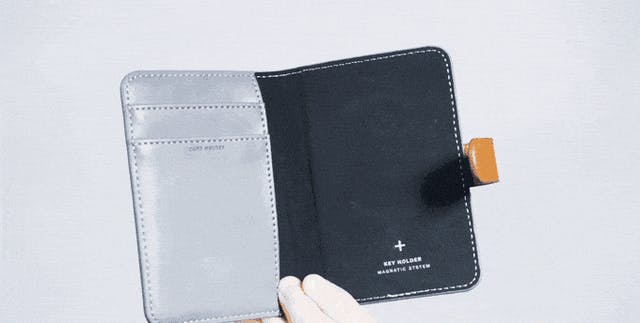 キーケースには弾力性のあるシリコンバンドがついており、最大3枚のカードを挟むこともできます。