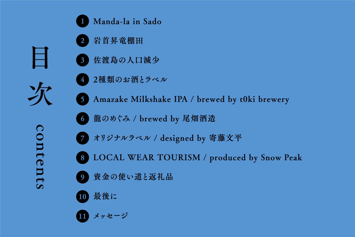 「お酒を通じ、佐渡島の文化を伝える」コンセプトを、デザインの文脈から強力にサポートして頂く予定です。