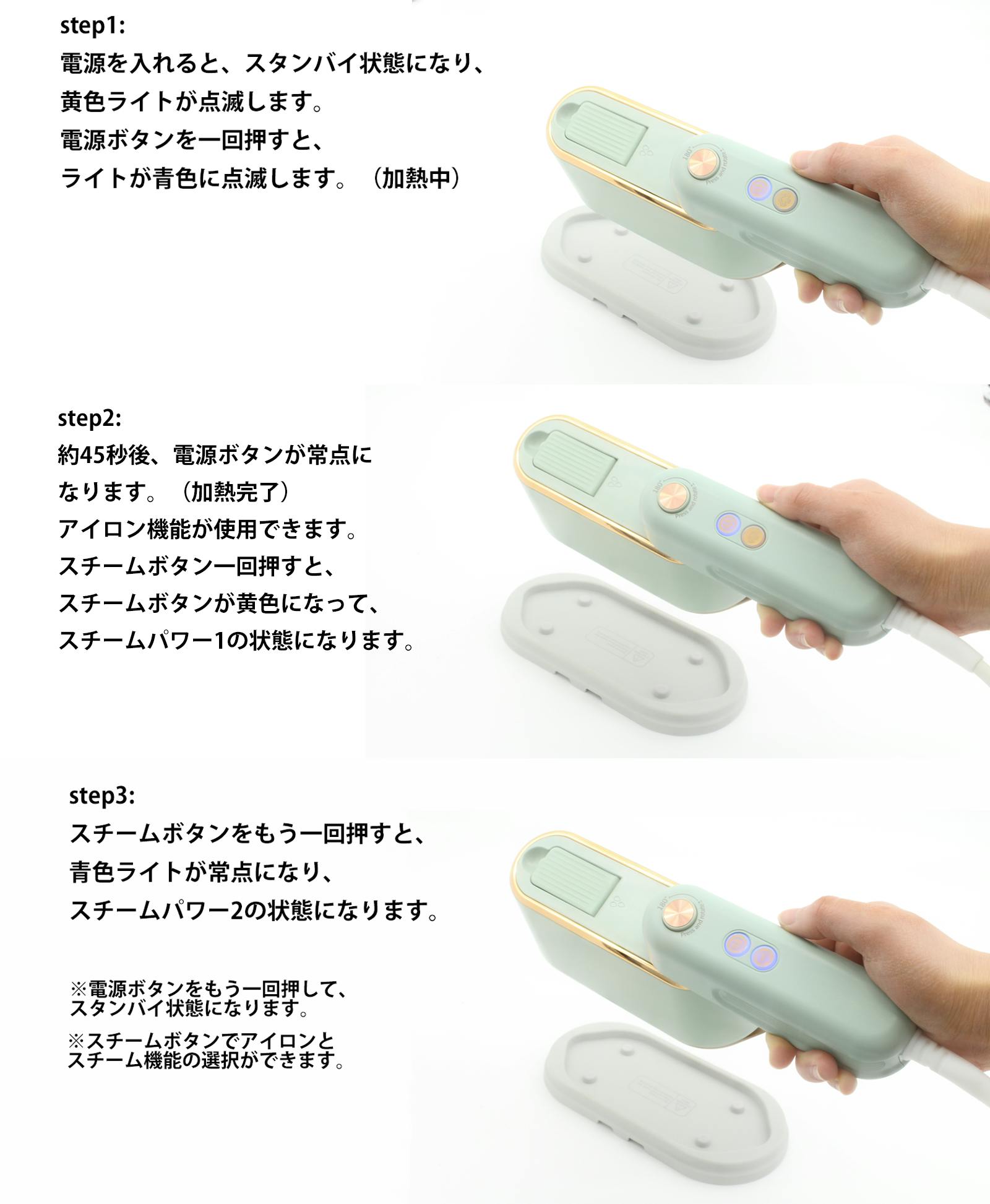 「コンパクト、高速加熱のスチームアイロン」