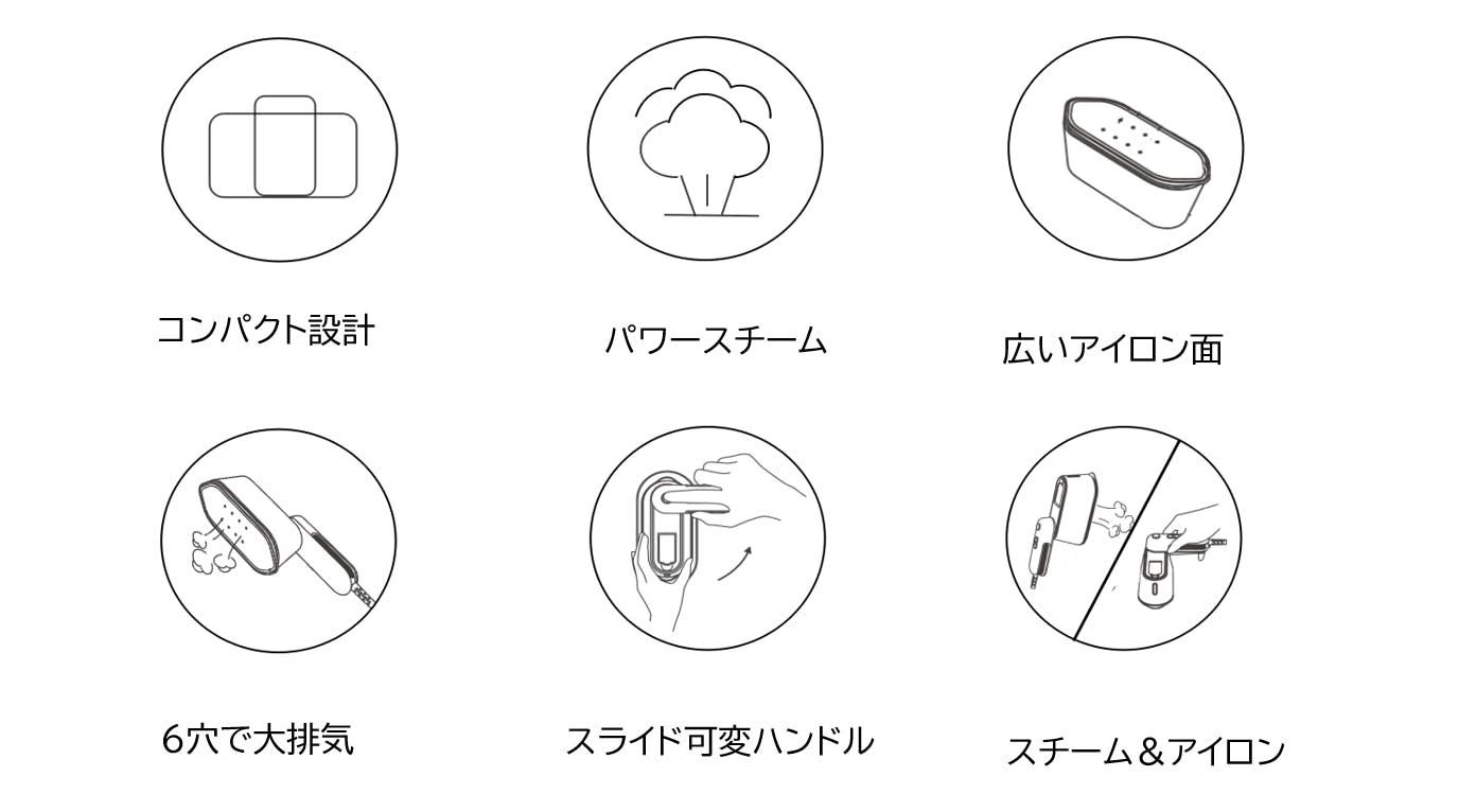 miniスチームアイロンでは上記のようなお悩みを6つの特徴で解決してくれます!