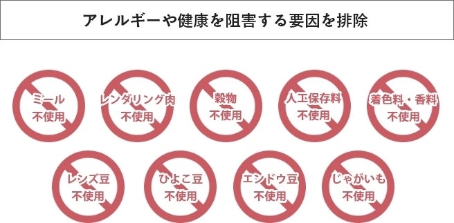 エンドウ豆・ひよこ豆・レンズ豆・その他豆類・じゃがいも不使用