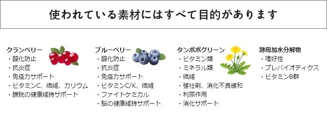 酸化防止としてクランベリー・ブルーベリーが配合されています。