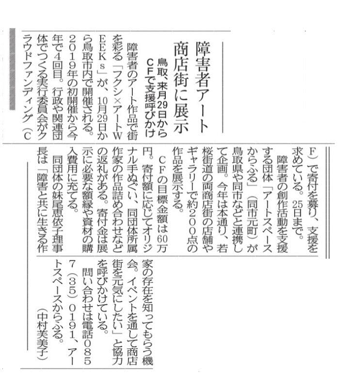 2022/09/24 08:43本日9/24(土)の日本海新聞で紹介してもらいました。残り2日!ご支援宜しくお願いします。 もっと見る