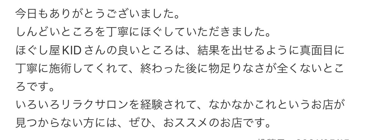 ほぐし屋KIDをご利用くださった方の口コミをご紹介致します