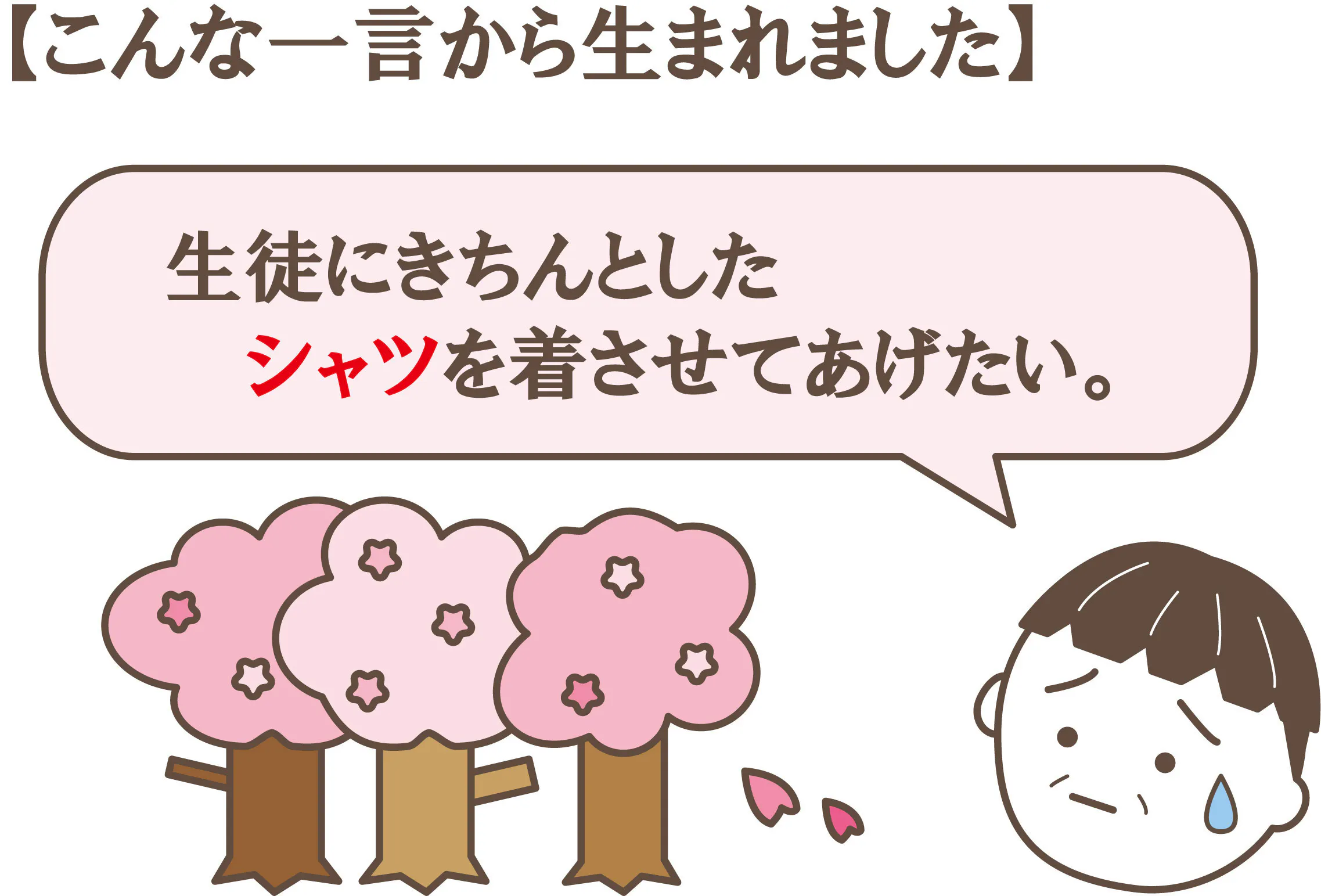 「このシャツを着てもらうあなたへ、いつもの日常に1着分の優しさと幸せを贈ります。」