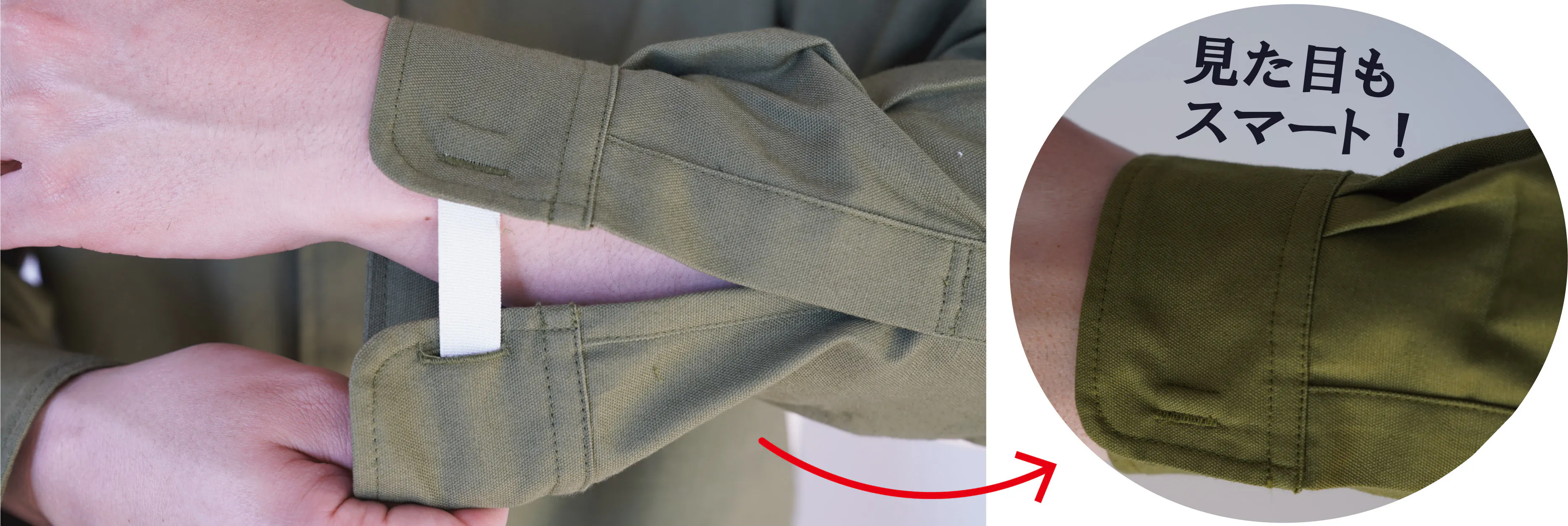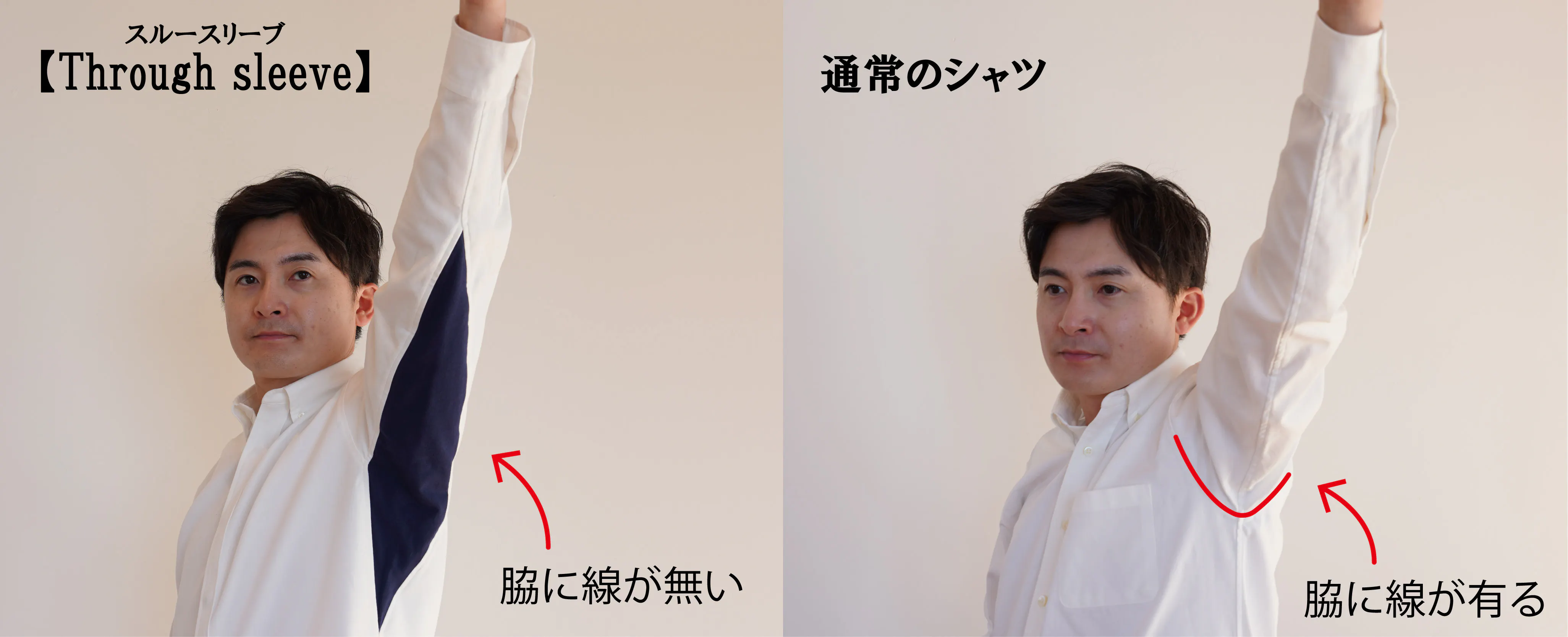 【Through sleeve】(スルースリーブ)の簡単に着用できる【3つの秘密】について1つずつご説明いたします。