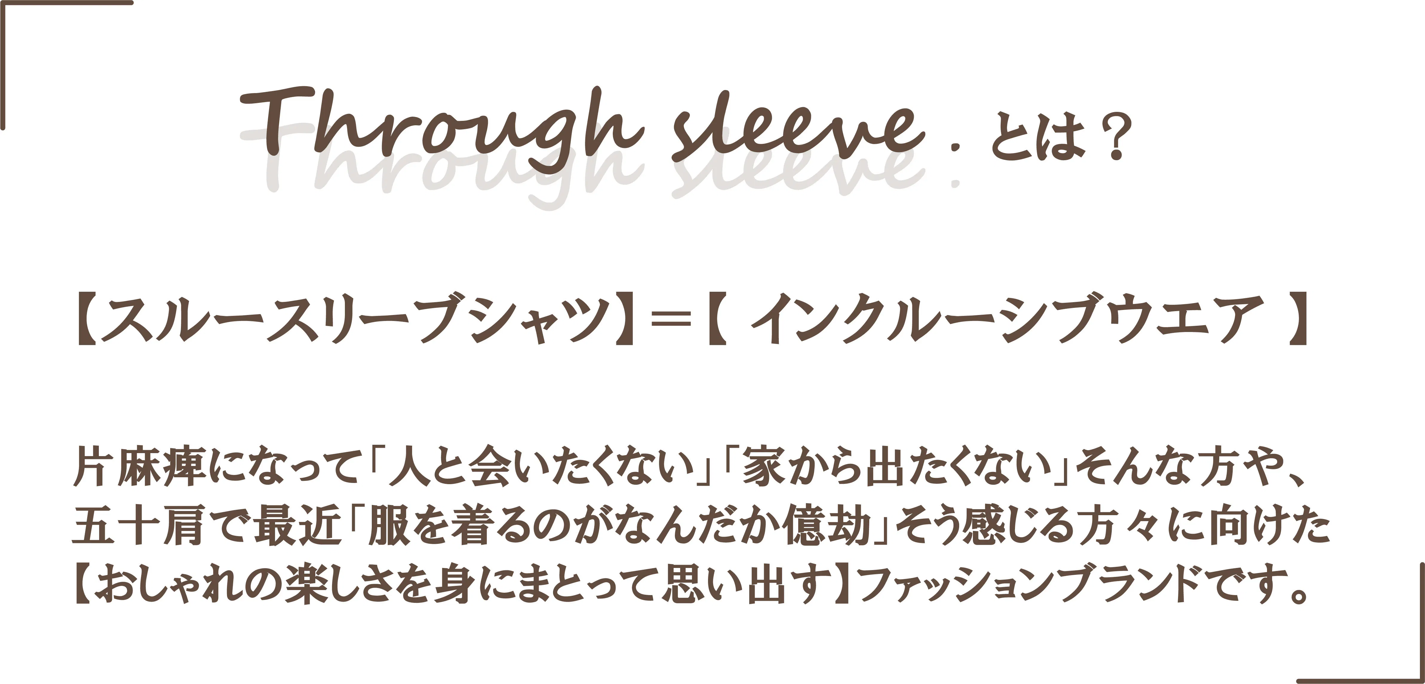 そんな思いで今回、脳卒中や脳性麻痺等の病気や障害で片麻痺になってしまった方向けに、袖を通すことに特化したブランド【Through sleeve】(スルースリーブ)を立ち上げました。