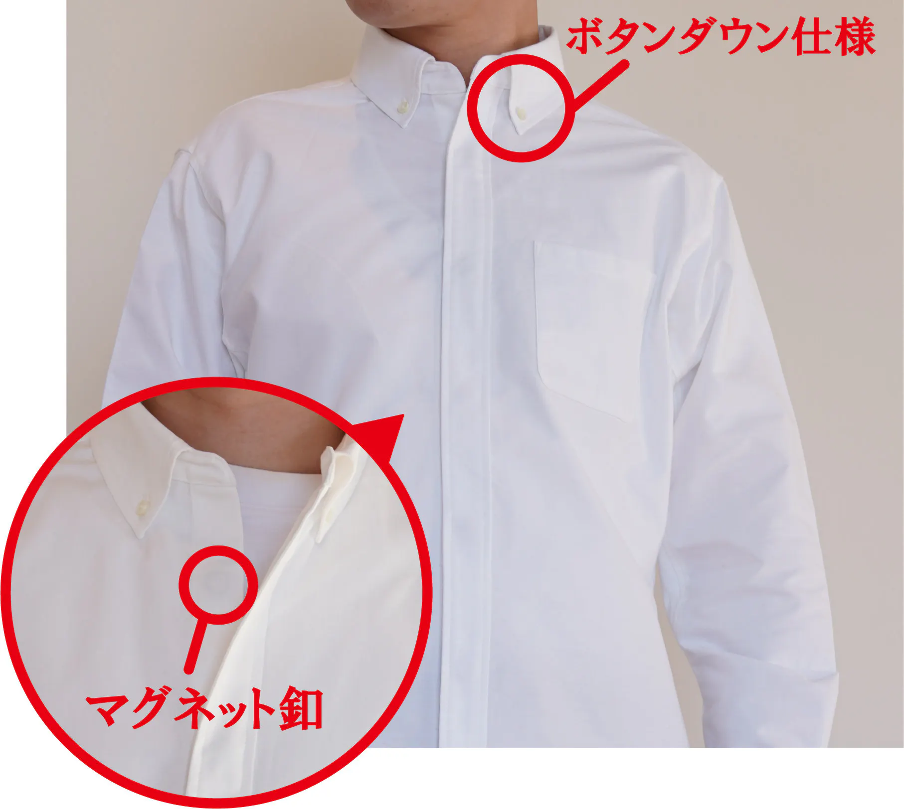 *白、淡い色の生地は長期間着用するとマグネット釦部分が黒ずむ可能性がございます、予めご了承ください。