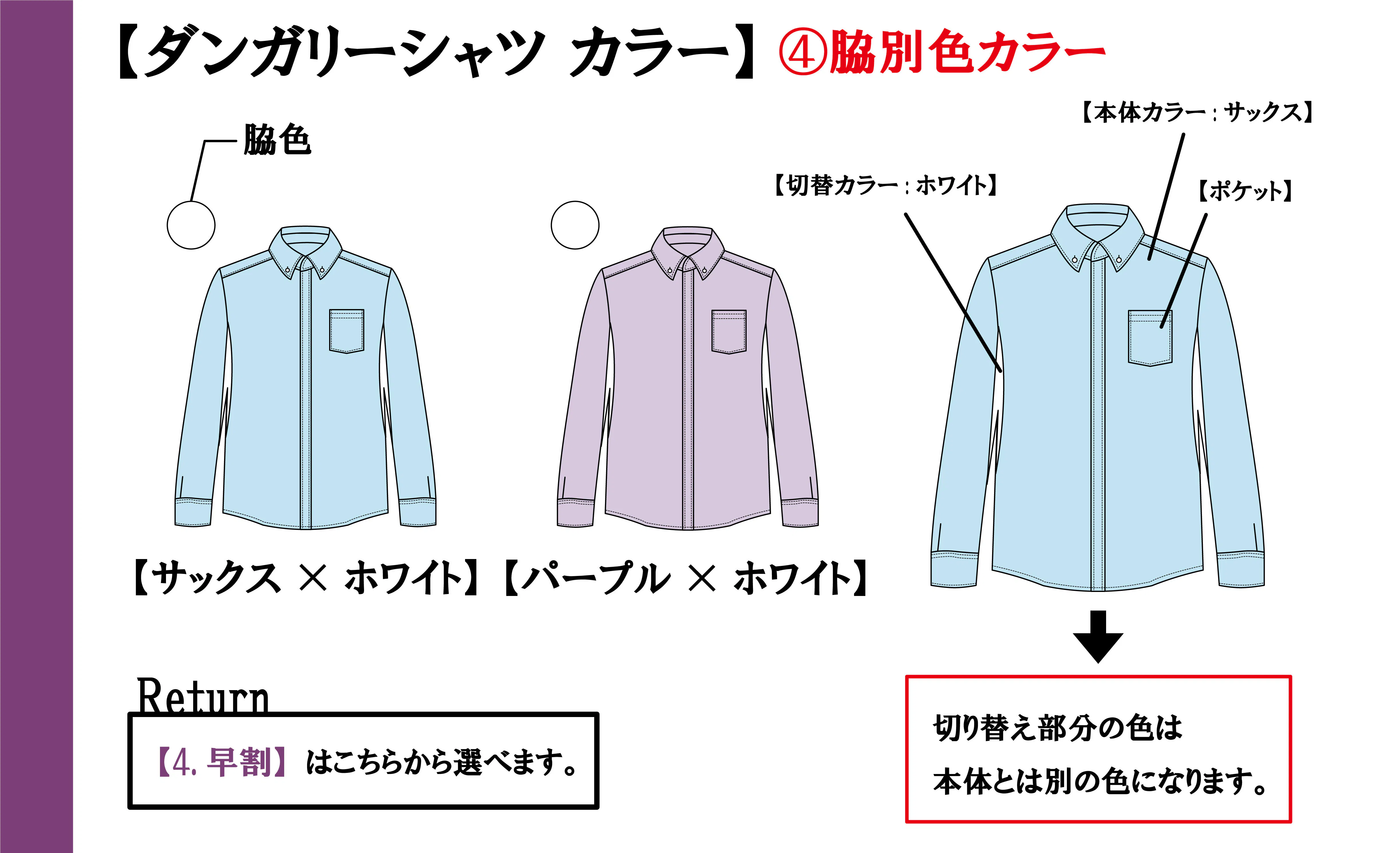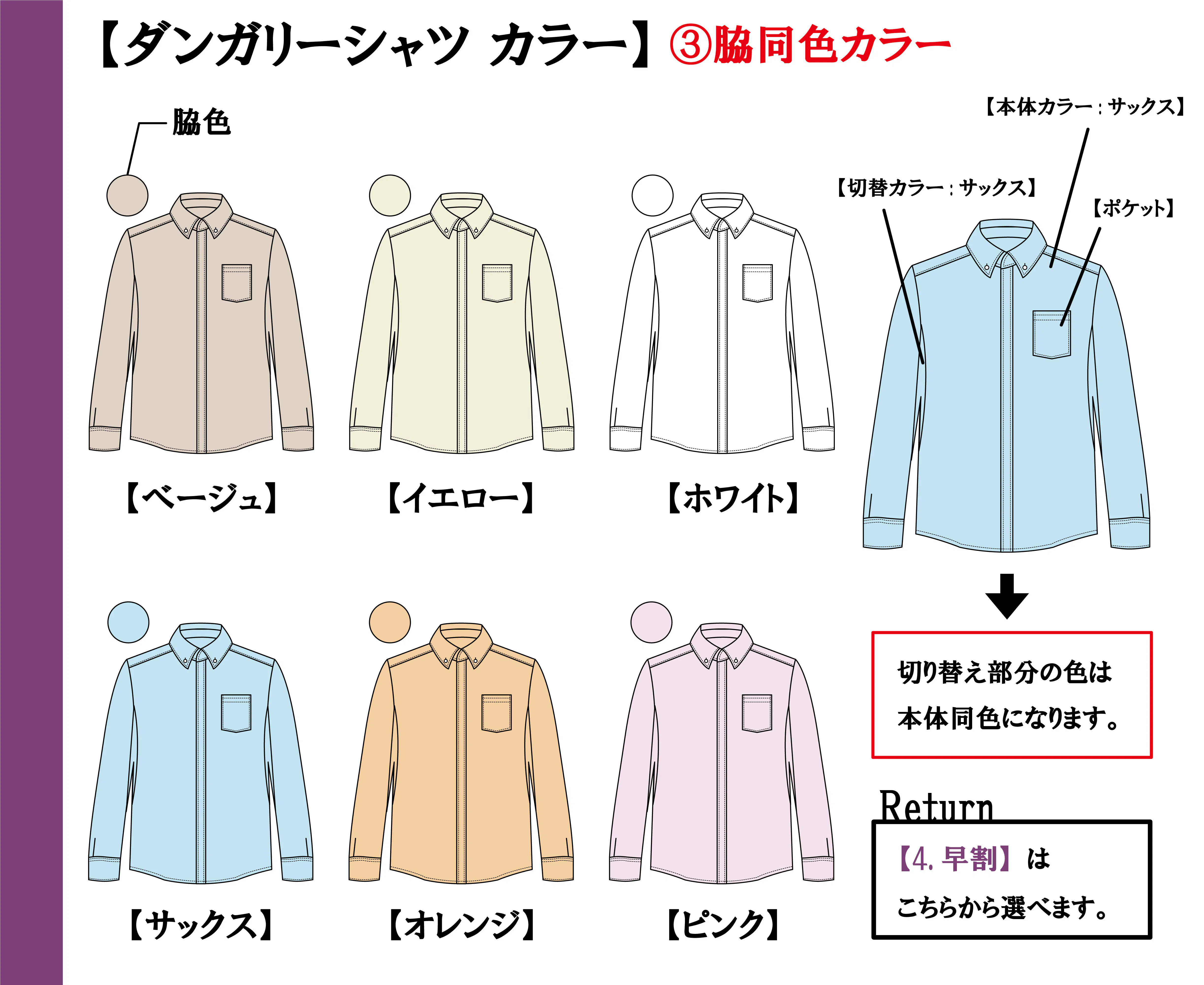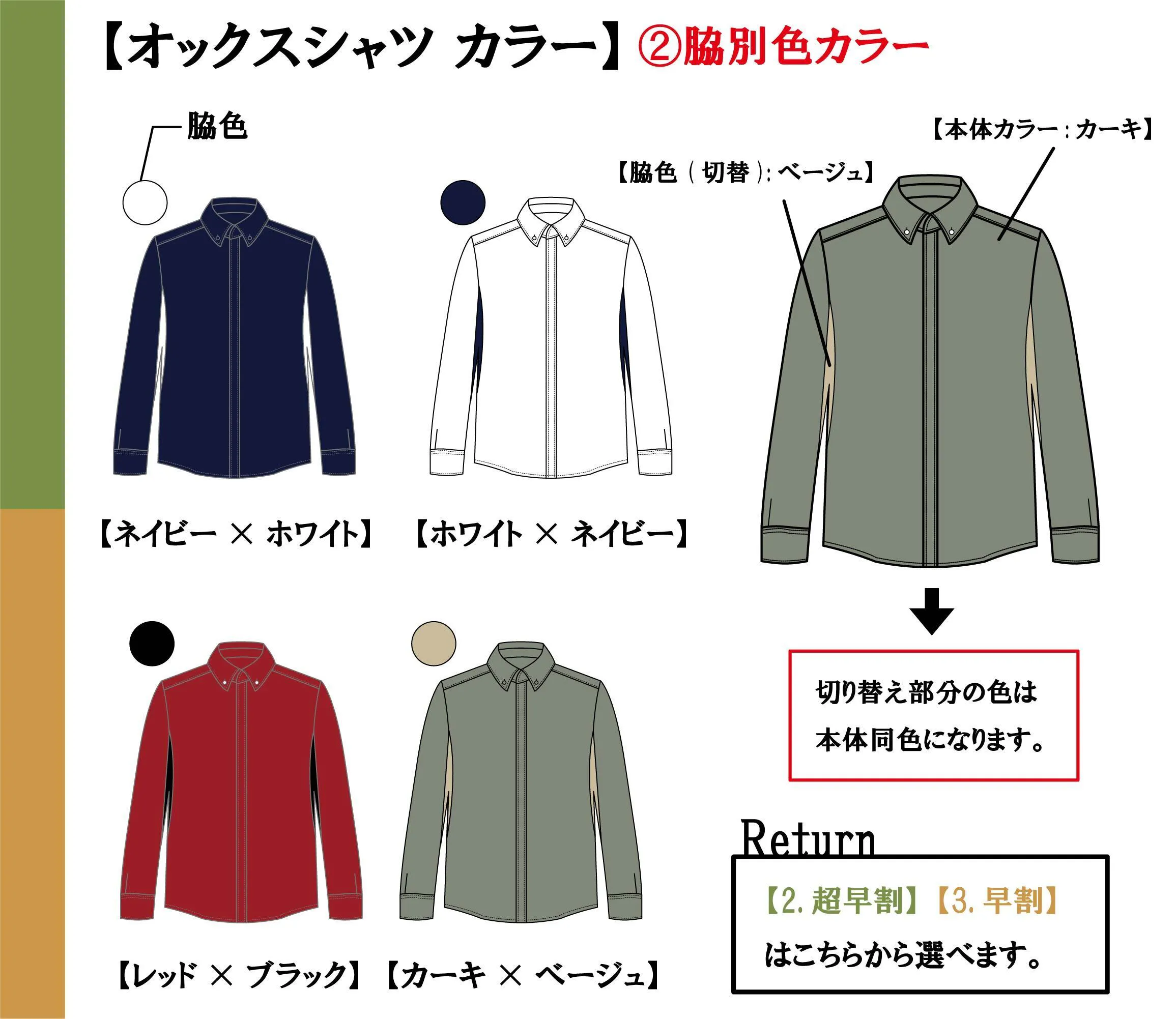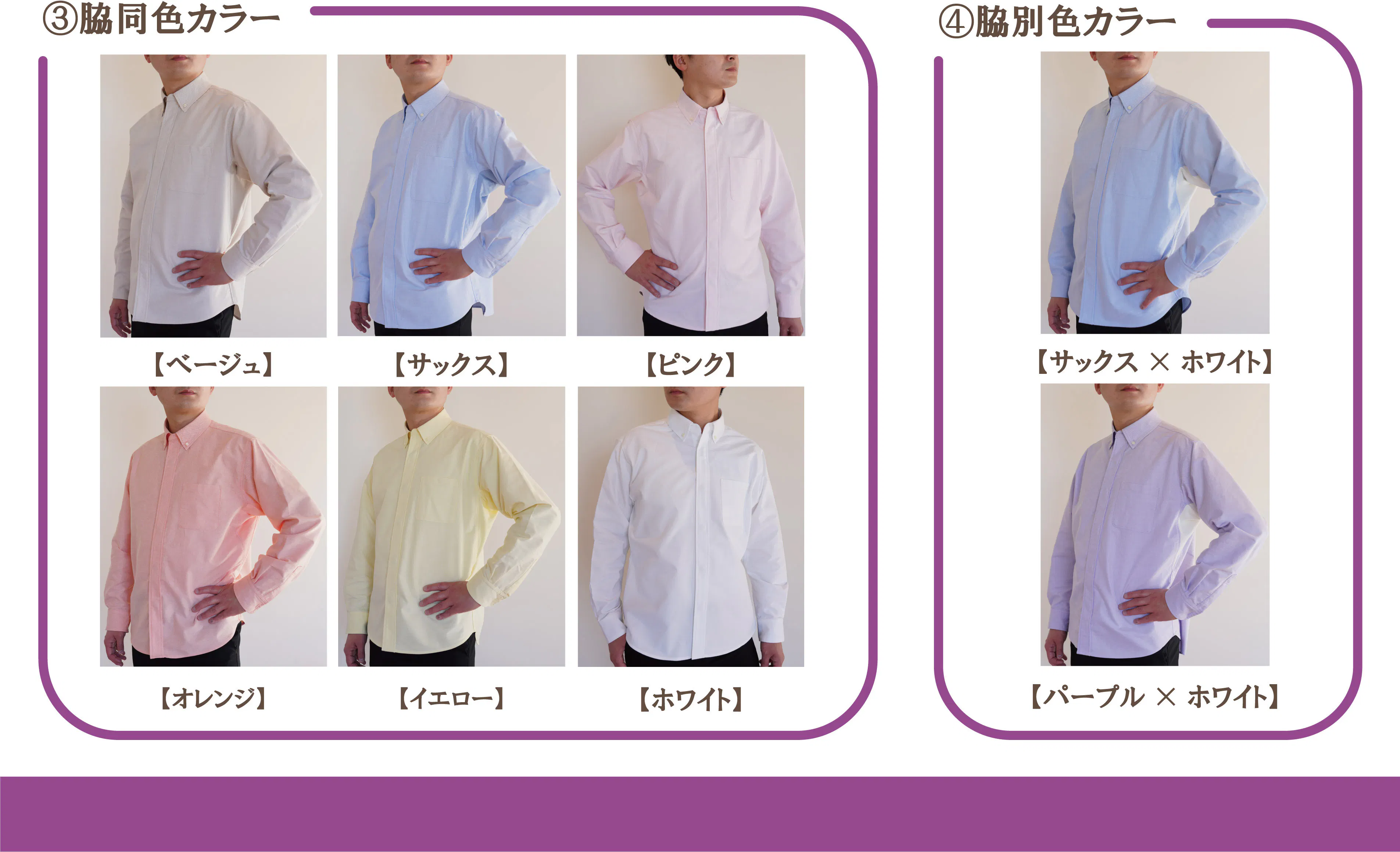 【オックスシャツ】(②脇別色カラー)