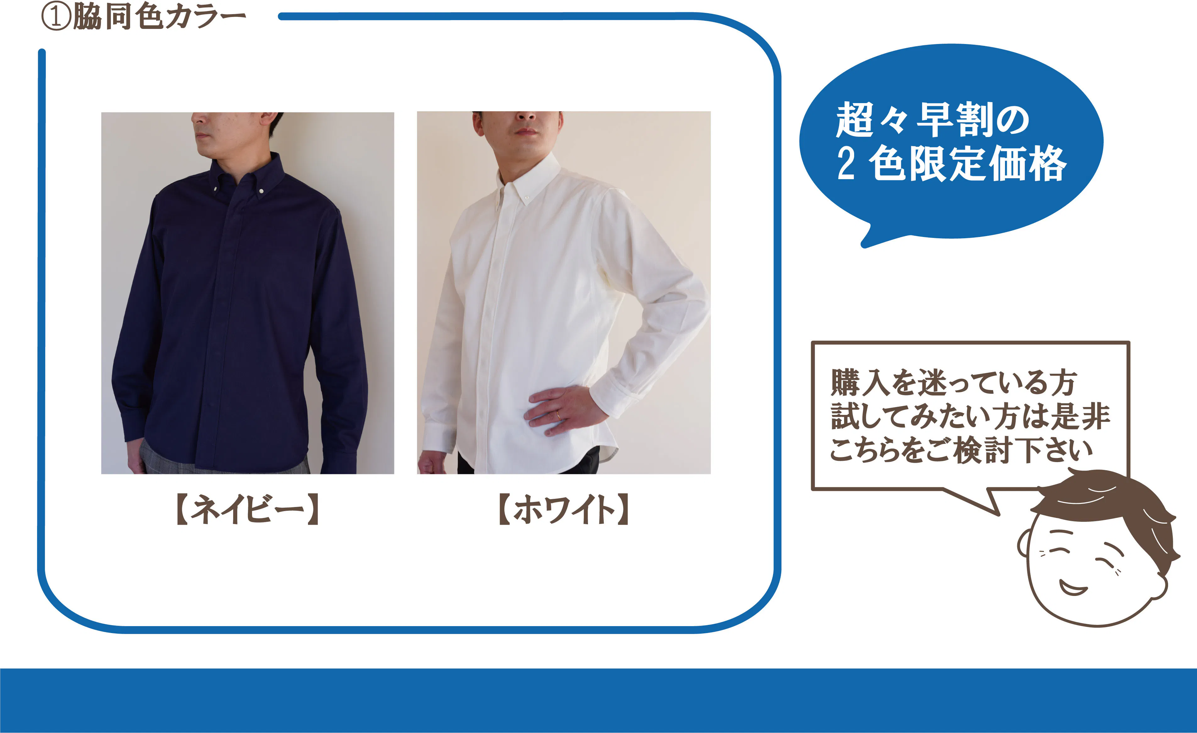①のネイビー、ホワイトのどちらかをお選びいただけます。