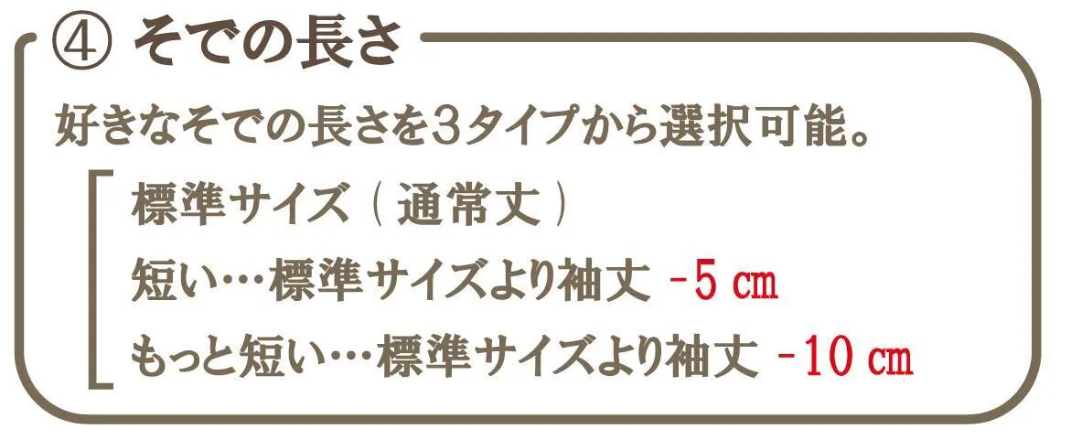 160~165cmくらいの方ですと袖を【短め】150~155cmくらいの方であれば【もっと短め】をお勧め致します!若干洗濯後に縮むこともありますので、身幅は固定で裄丈を等参考にしていただきご判断願います。
