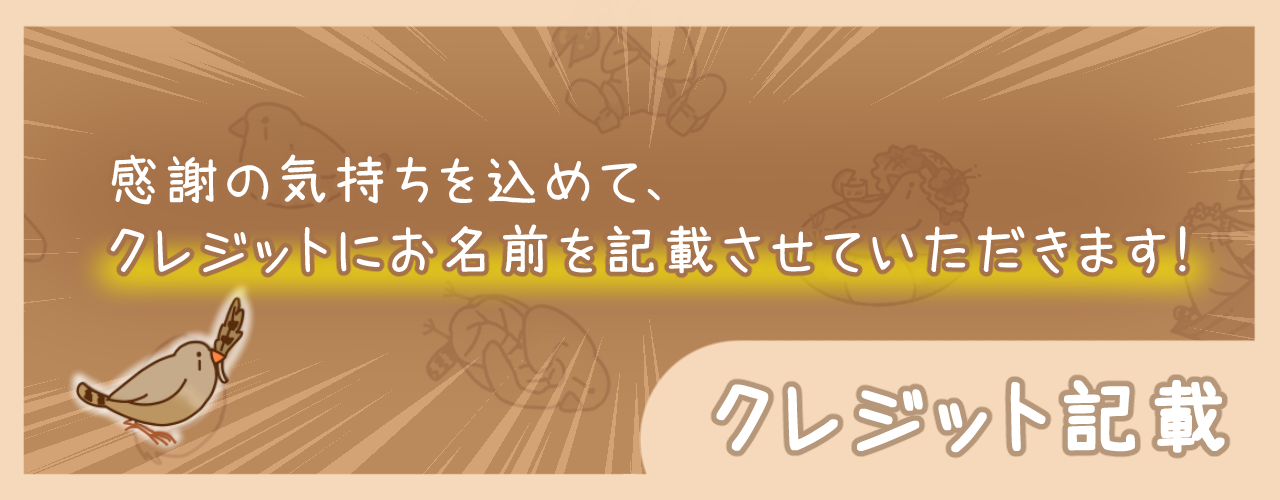 ゲーム内のクレジット表記にて、お名前を記載させていただきます!