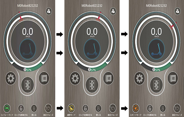 の3つのアシスト速度調整が出来ます。また、防犯モードやライトのON/OFFもアプリで操作可能で残バッテリーも目視出来ます。