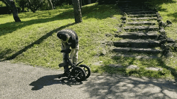ハンドルを折りたたむだけでも小さくなりますがC3は更に半分に折りたためます。