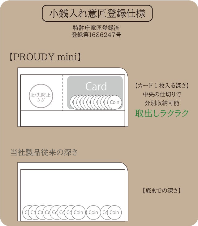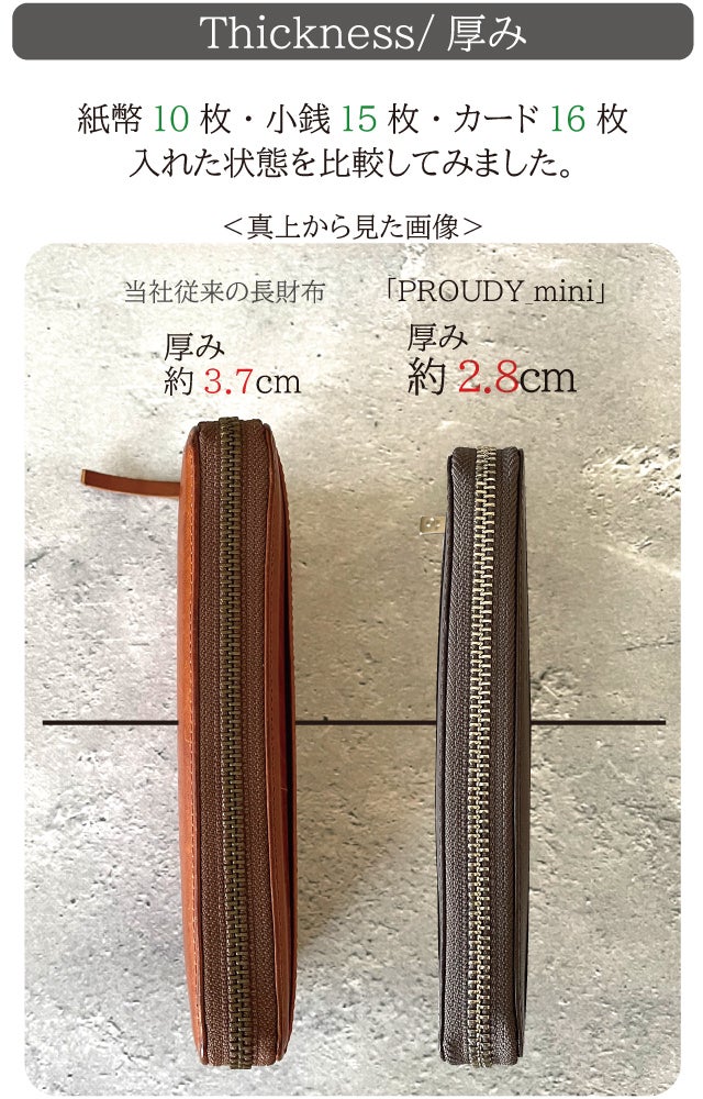 コンパクトでありながらカードの収納をメインに考え、【PROUDY】の取り出しやすい仕様はそのままに、独自設計で本体の幅を