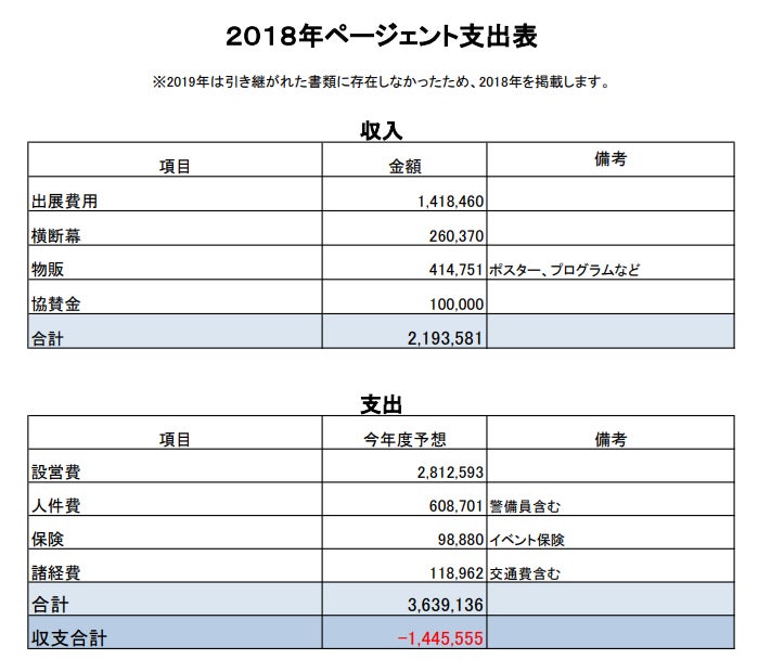 当時の参加者にこの収支表の確認を取ったところ、ここには記載されていないような経費が別にも存在するような助言も頂きました。