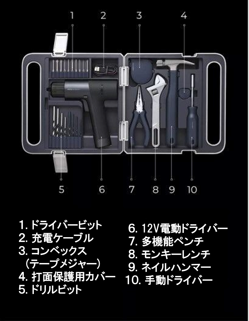 ”12V電動ドライバー”も穴あけとネジ締め両方に対応。