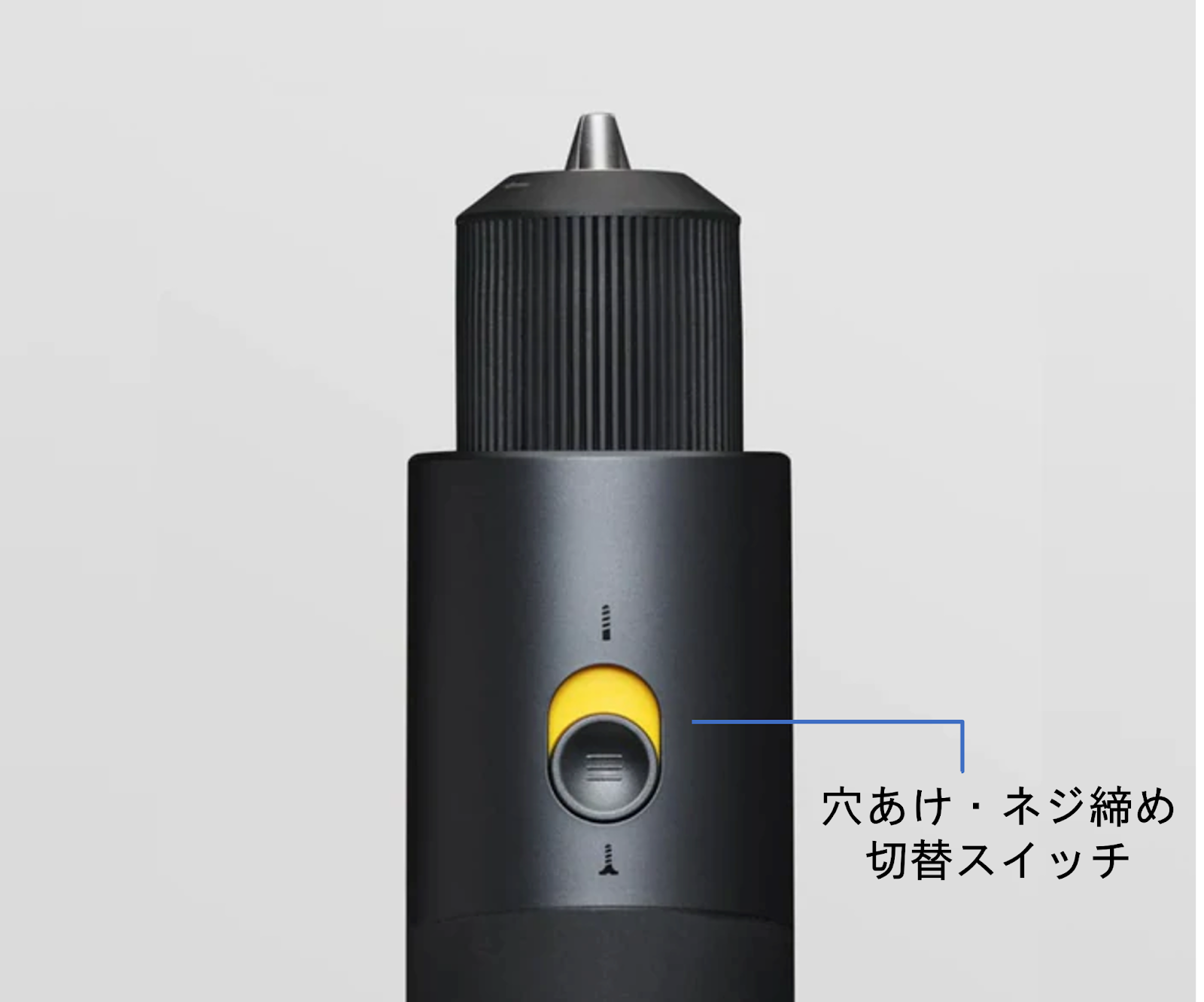 上部のスライドスイッチで穴あけとネジ締めの2つの機能を切り替えることが出来ます。