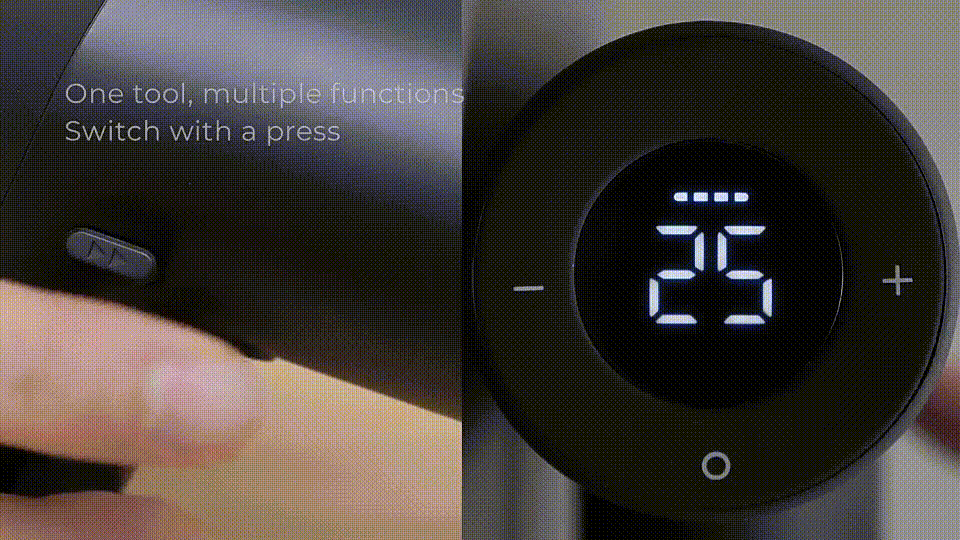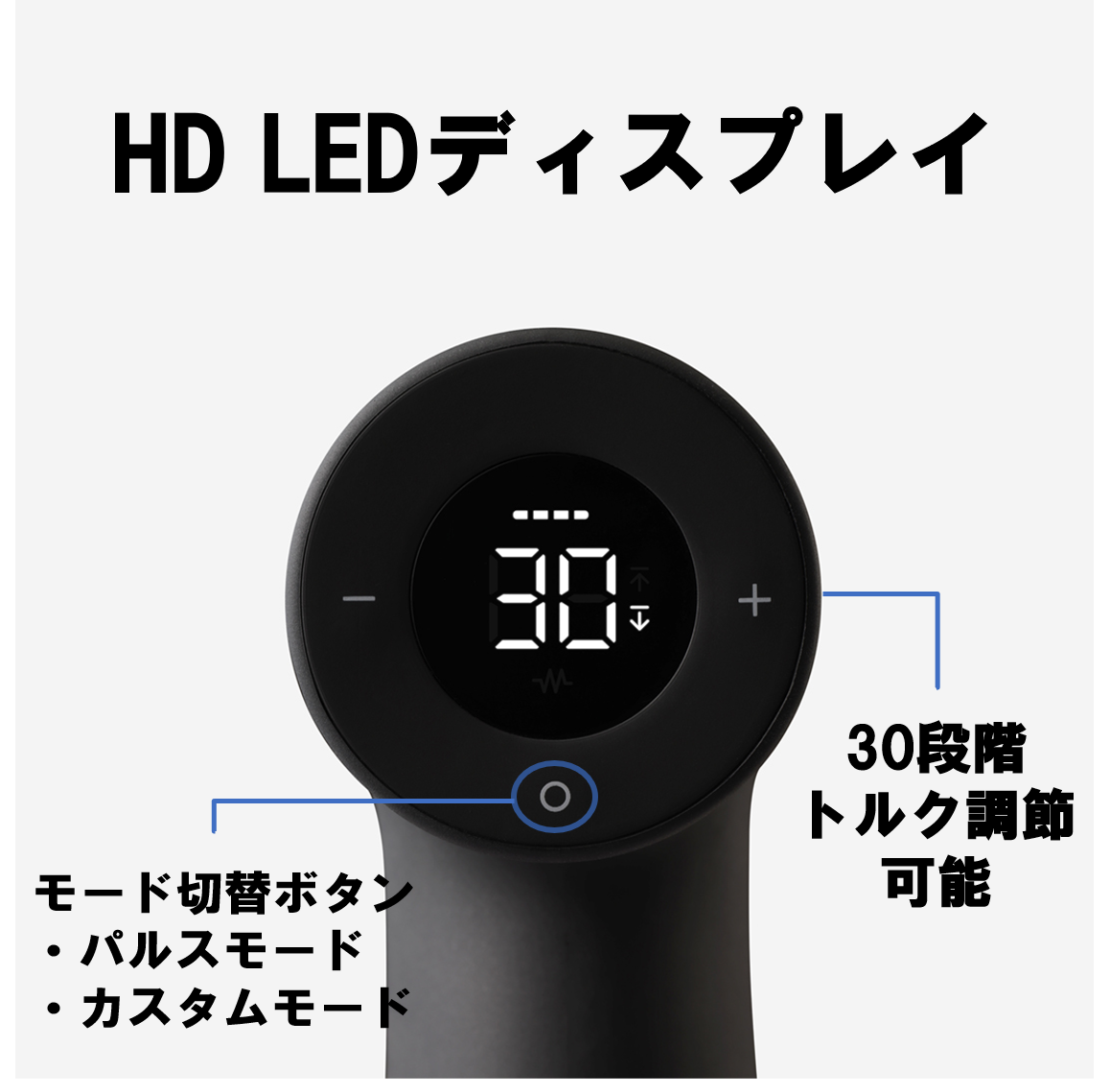 “12V電動ドライバーの背面に搭載しているHD LEDディスプレイはデザイン性が高く、一目で作動状況が分かるよう設計されています。