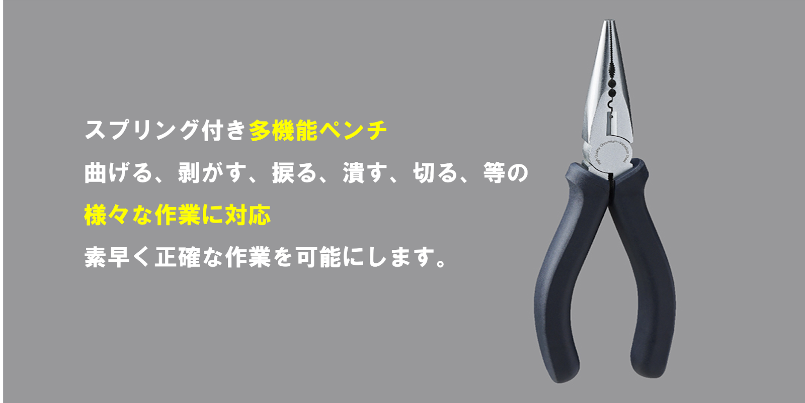 HOTO ペンチは曲げる、剥がす、捩る、潰す、切る、等の様々な作業に対応したスプリング付き多機能ペンチです。