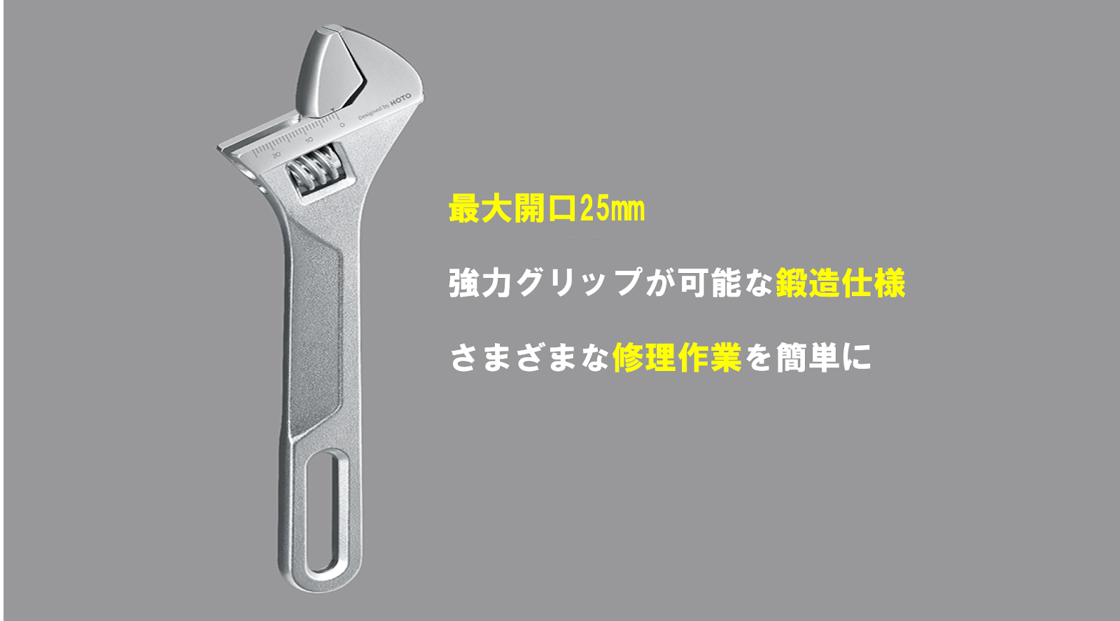 HOTO モンキーレンチは25mmまでの幅広いサイズのボルトに対応しており、丈夫な鍛造仕様で強いトルクをかけることが可能なため、様々な修理作業を簡単にします。
