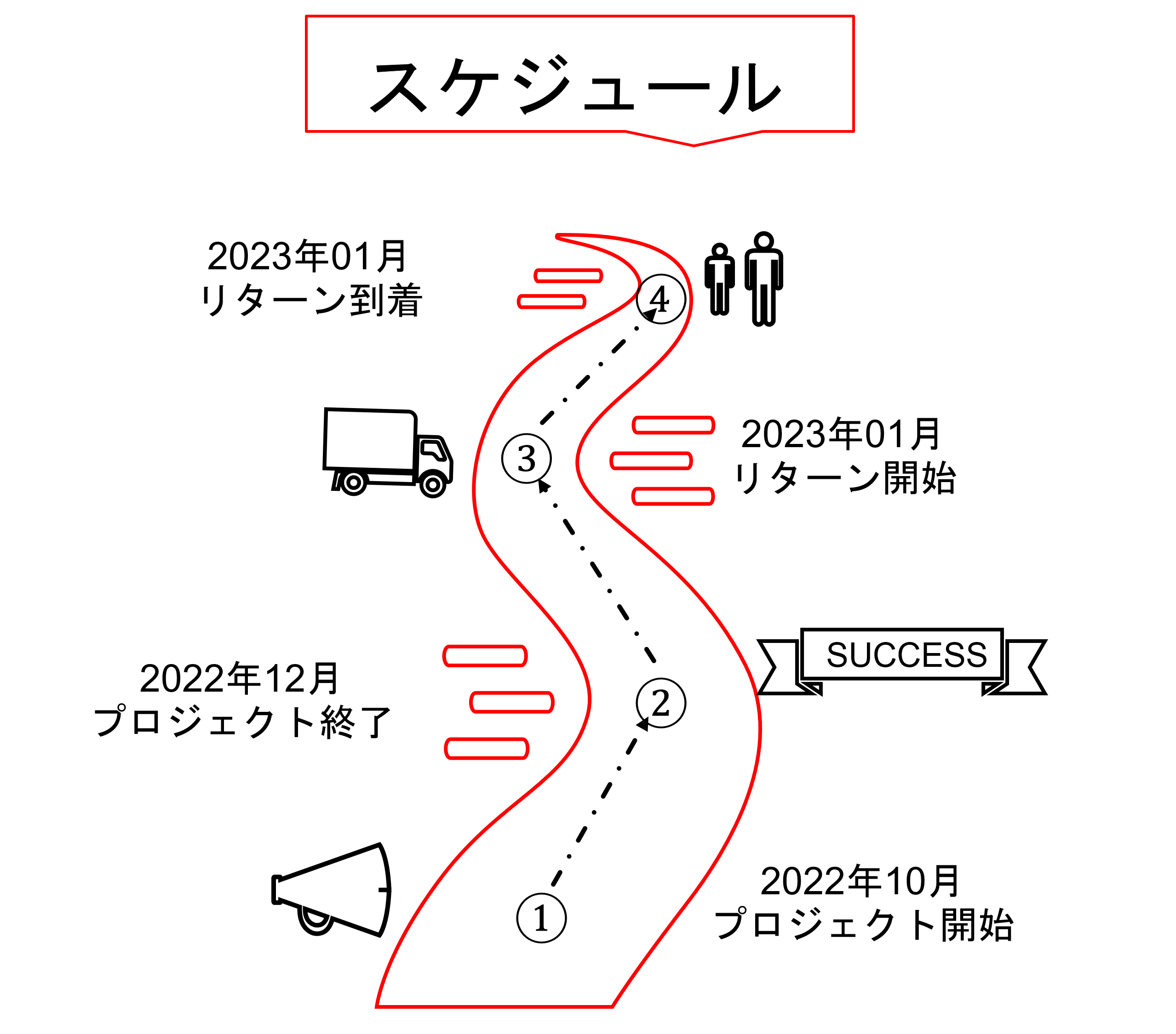 ※本文中に記載させていただいたスケジュールは、あくまでプロジェクト公開時点の予定です。支援の性質上、配送遅延のおそれがございます。