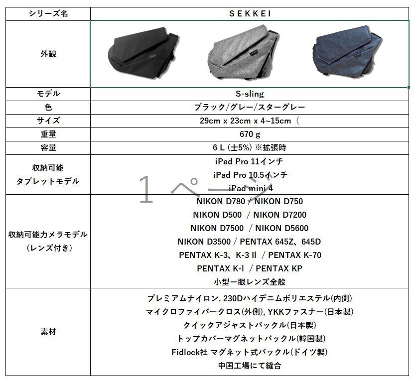 スリングバッグ SEKKEI S-sling に新色 スターグレーが登場!