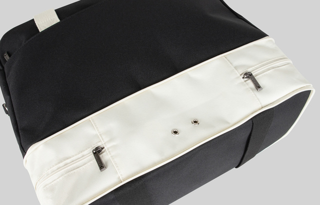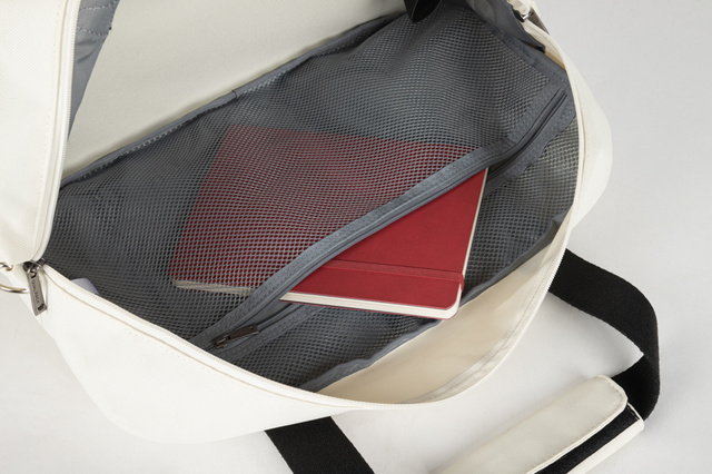 バッグ背面の両端には小さな収納スペースがあるので、クロス紐やよく使うボールペンなどを入れて使用可能です。