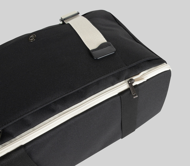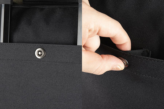 キャリーバッグへ結合する上部分のボタンは、バッグがスーツケースから外れないようにしてくれます。