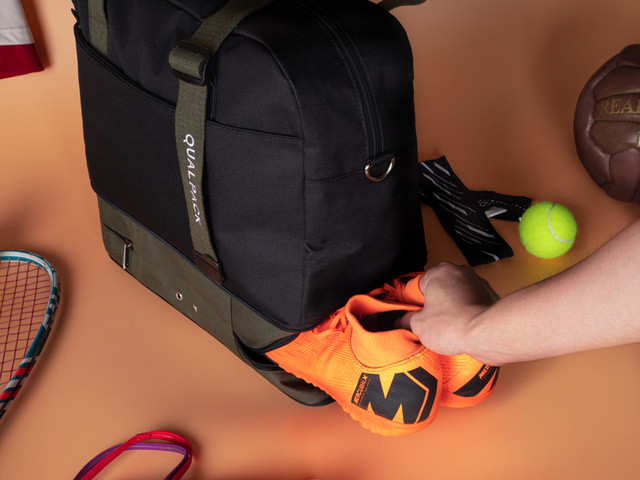 「QUALPACKストレッチバッグ」は格好いい旅行バッグにも!使い勝手の良いスポーツバッグになります。