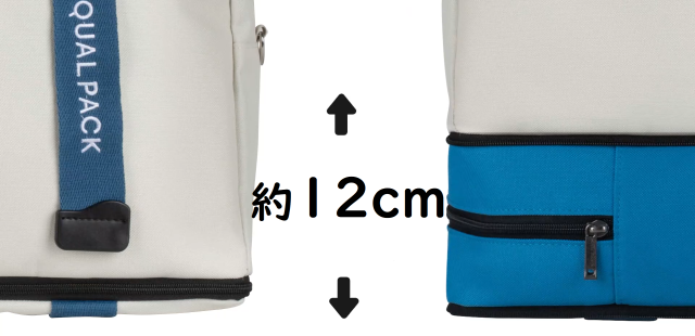 拡張スペースには靴や運動後の洗濯ものなどを入れて他の荷物と混ざらないようにしてくれます。