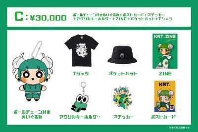 ぬいぐるみボールチェーン+限定ポストカード+ステッカー+アクキー+ZINE20p+バケットハット+Tシャツ