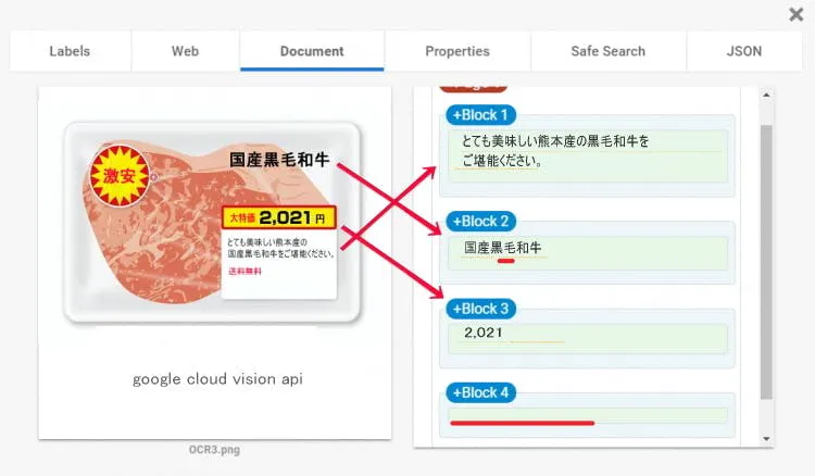 Google(GCP)機能を用いて、ラベルからのテキスト自動読み込みも可能です。