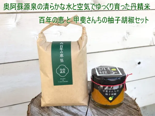 3. 「限定50セット」奥阿蘇くさかべ米「百年の恵(300g)」+ 甲斐さんちの柚子胡椒(75g)