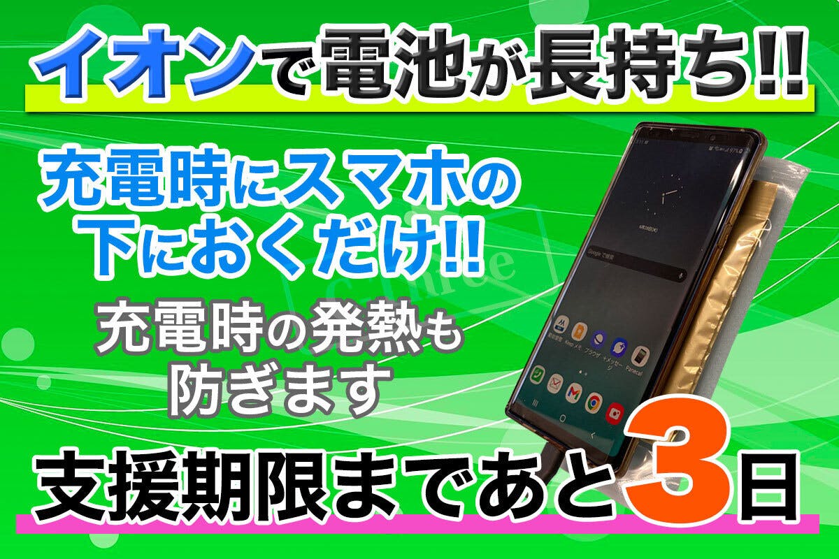 当社スタッフが4年使っていて朝100%のバッテリーが夕方には20%になるようなスマホが10日ほどイオンウェーブを使っていたら、なんと朝100%が翌日お昼に30%になるぐらいまで回復したのです。驚きました!
