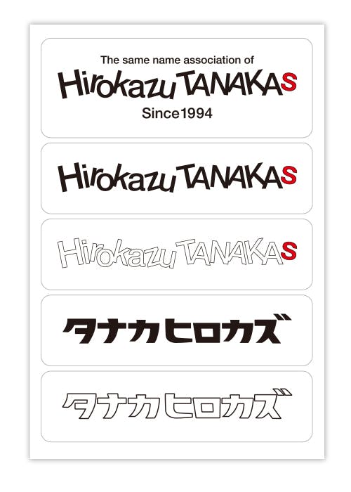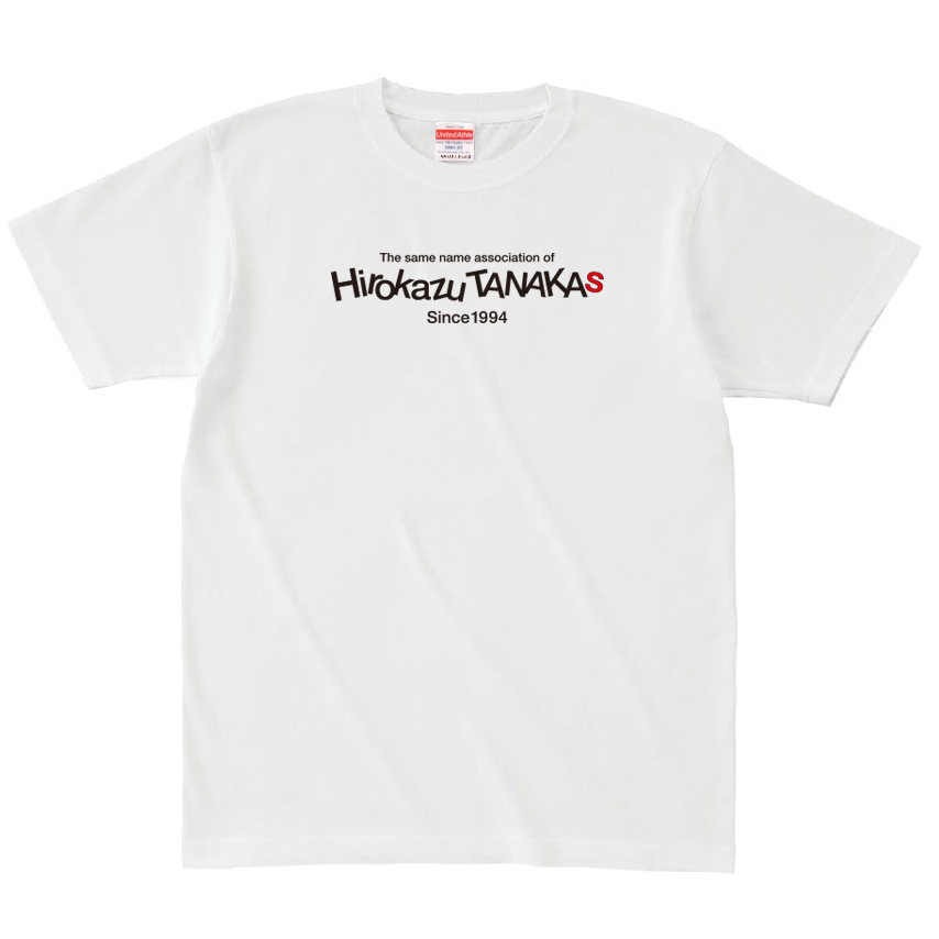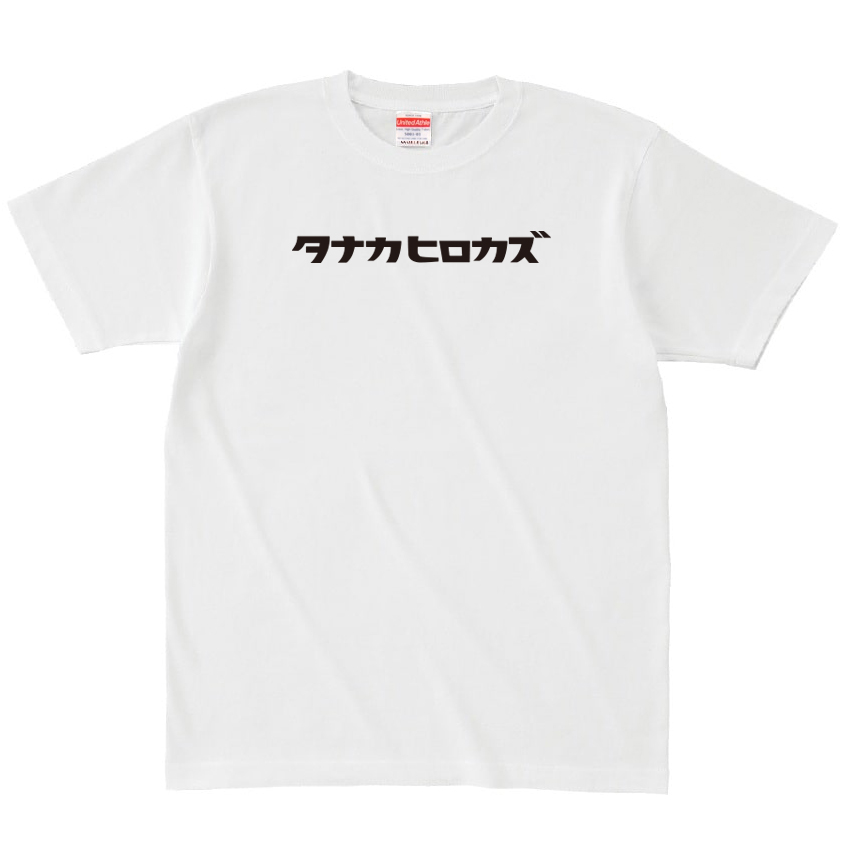 漢字を問わない「タナカヒロカズ運動」になったことをスッキリとTシャツデザインに落とし込みました。「タナカヒロカズ」のロゴをデザインと見るか、小中学生の体操着に貼り付けられた本人氏名と見るかで好みが別れそうですね。