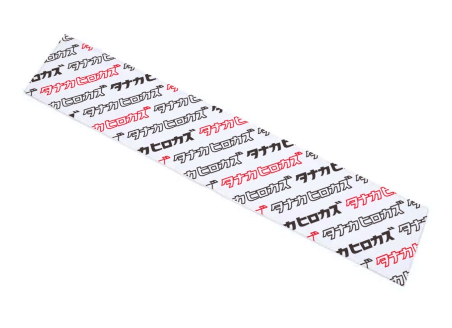 もはや「タナカヒロカズ」が人名とは認識できず、江戸小紋のような位置付けで、「ケロリン」の風呂桶とともに、銭湯、温泉、共同浴場での大活躍が期待できるアイテムです。スーツケースや普段使いのカバンの取っ手に巻き付けて、「タナカヒロカズ」になりきるプレイにも重宝してもらえるはずです。
