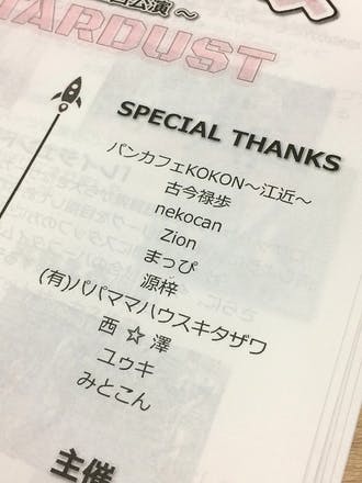 2018/03/22 15:54こんにちは!ロケットサーカス代表の丸ちぇろです。いつもありがとうございます!ロケットサーカス第2回公演「STARDUST」無事に終了することができました。皆さまの支援がパフォーマーの励みになり、お客さんの笑顔となりました。ロケットサーカスをともに作り上げていただき、本当に感謝です。リターンの一つ、パンフレットへのクレジットも実施させていただきました(クラウドファンディングとは別に協賛してくださった方のお名前も含めれております。ご了承ください)今後ともロケットサーカスを応援していただければ幸いです!よろしくお願い申し上げます。 もっと見る