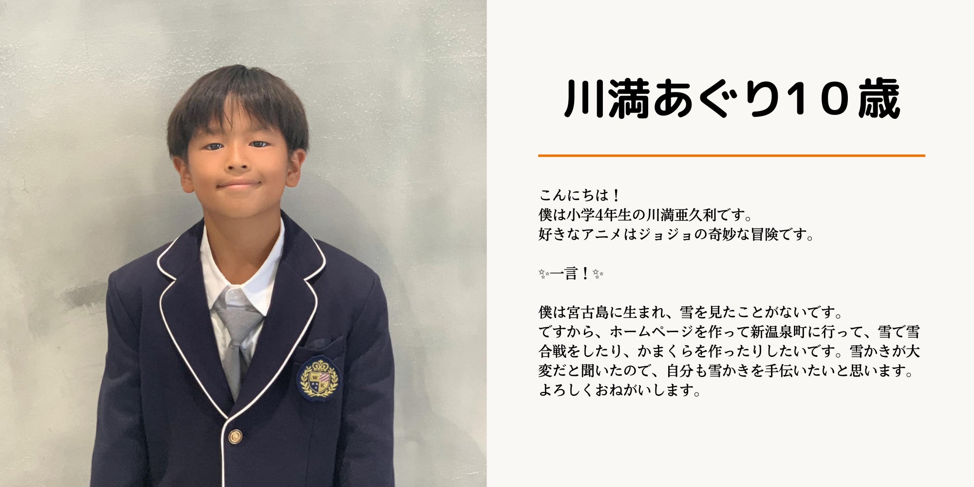 2023/01/31 14:21クラウドファンディングCAMPFIRE 宮古島の子どもたちがホームページ制作に挑戦!学んだスキルで稼ぐ力を身に付けたい! https://camp-fire.jp/projects/view/616048【宮古島の子ども達が初めての雪国、冬体験!】宮古島の子ども達が新温泉町で楽しむ様子が"長編大作動画"として公開されました!1月6日(金) 出発時の宮古島の気温は22℃で新温泉町到着の気温は1℃!気温差に驚く子ども達。新温泉町では、漁村のお宿に泊まり、日本海の獲れたて新鮮な海鮮料理にイノシシ鍋も食べて大満喫!湯村温泉では源泉かけ流しのあったかい露天風呂に浸かり温泉卵も作って食べました!新温泉町の皆様が総出で歓迎して頂きまして、雪山では、雪合戦やスノ-スライダー、ノルディックスキーも体験させてもらいました!【新温泉町旅行への子ども達の思い入れは尋常ではない!】クラウドファンデングがスタートしてからまもなく、半年が経とうとしています。これまで、クラウドファンディングの広報活動や営業、デザイン案件の作成、ヒアリング、納品までを全て子ども達だけの手で行ってきました。慣れないことだらけ、新しい挑戦に次ぐ挑戦で、ほんとに大変だったと思います。宮古島宅建協会様へのプレゼン大会だからこそ、新温泉町旅行への子ども達の思い入れは尋常ではありませんでした!”全ては、この日のためにがんばって来たのですから!”子ども達が全身全霊、全力で楽しむ姿を是非是非、観て頂きたいと思います!動画は、旅番組風に編集してあるので、きっと、子ども達と一緒に旅を楽しんでいる気分になれると思いますよ。それでは、今後ともどうぞよろしくお願いいたします。レオデザイナーズ 顧問大熊範彦 もっと見る宮古島の子ども達が新温泉町にやってきた!