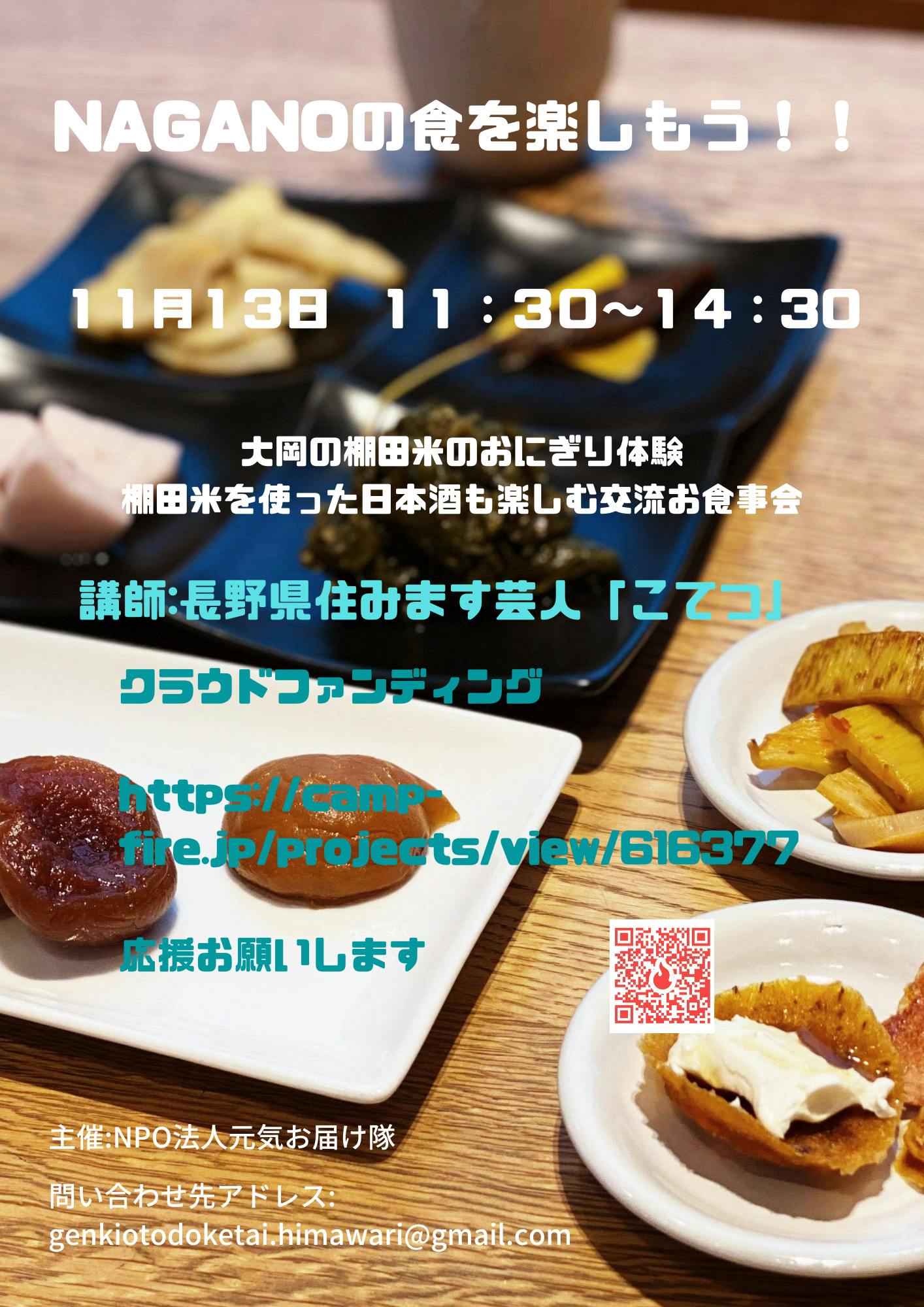 内容:農薬を使用せずに育てた棚田米のおにぎり体験、棚田米を使ったお酒と食を楽しみながら長野県のPRの交流会