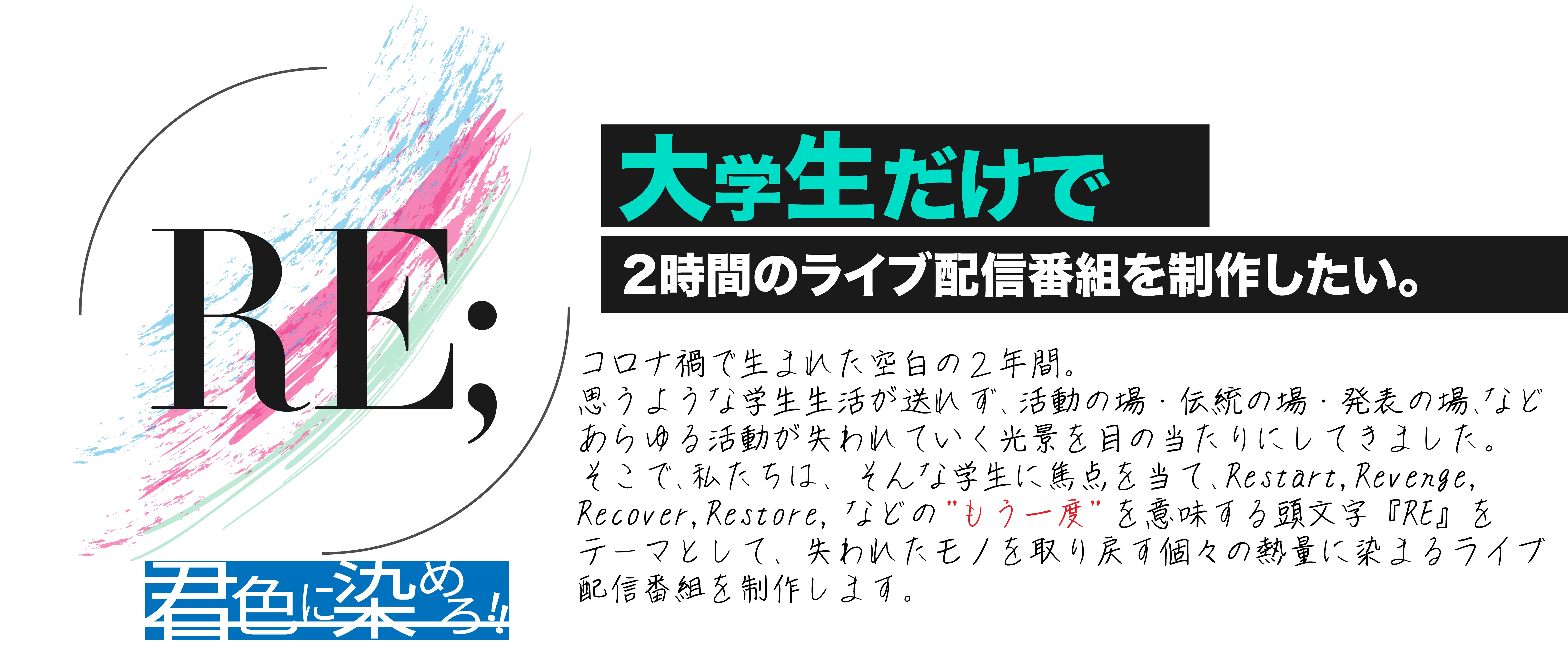 この番組を完成させることによって、不遇だった大学生活にけりをつけ、コロナ渦に生きる大学生の意地とプライドを表現することで、多くの大学生たちが新たなスタートをきるきっかけにしたいと思います。