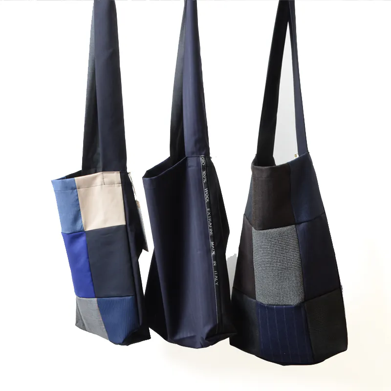 老舗スーツ工場から生産する際に出る端材、残生地を利用したマルシェトート。高級生地の上質な質感、肌触りで日常をワンランク上にしてくれます。