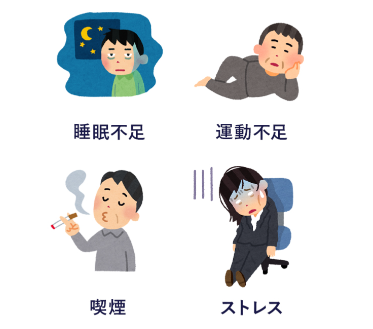 ・不規則な食生活や栄養不足、飲酒や喫煙などによりホルモンバランスが乱れ、体内はもちろんのこと頭皮に栄養が届けられていない