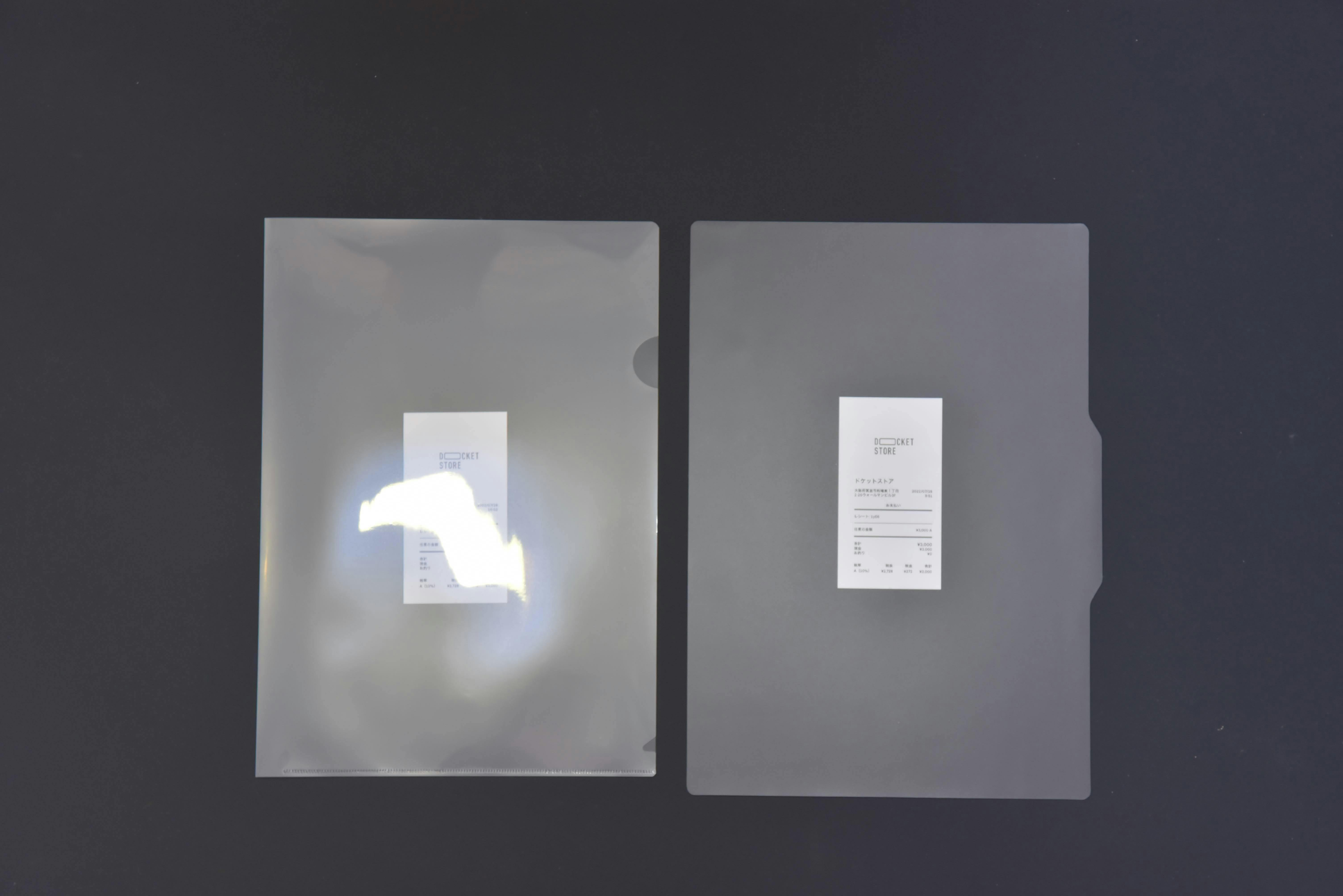 また、レシートの背景となるバインディングボードの表面には黒色のビニールペーパーを採用。