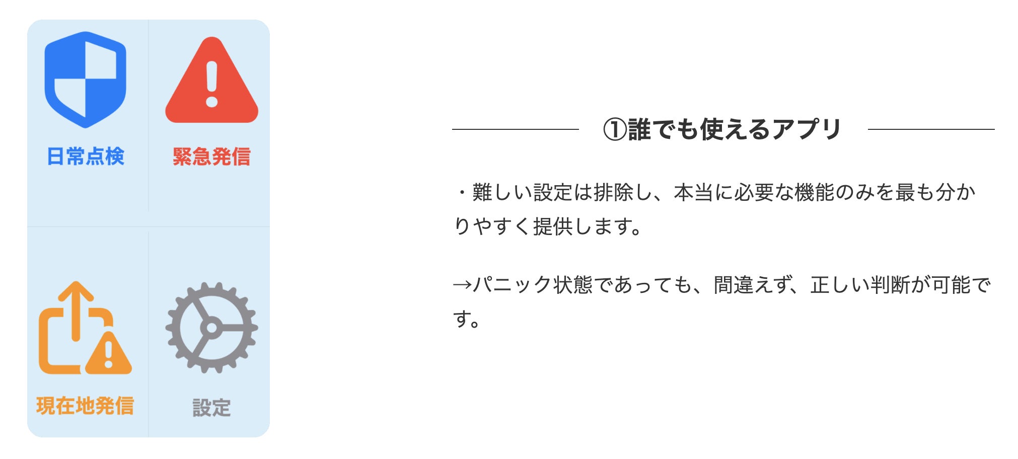 ①シンプルでどんな状況でも、間違えることなく使用可能