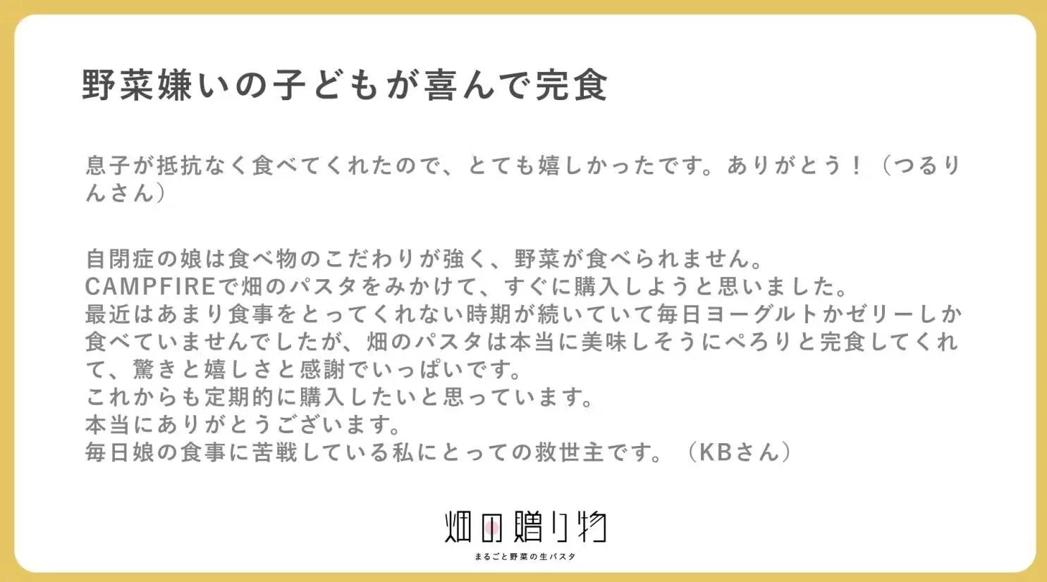 何よりも”おいしい”というメッセージがとても嬉しいです。