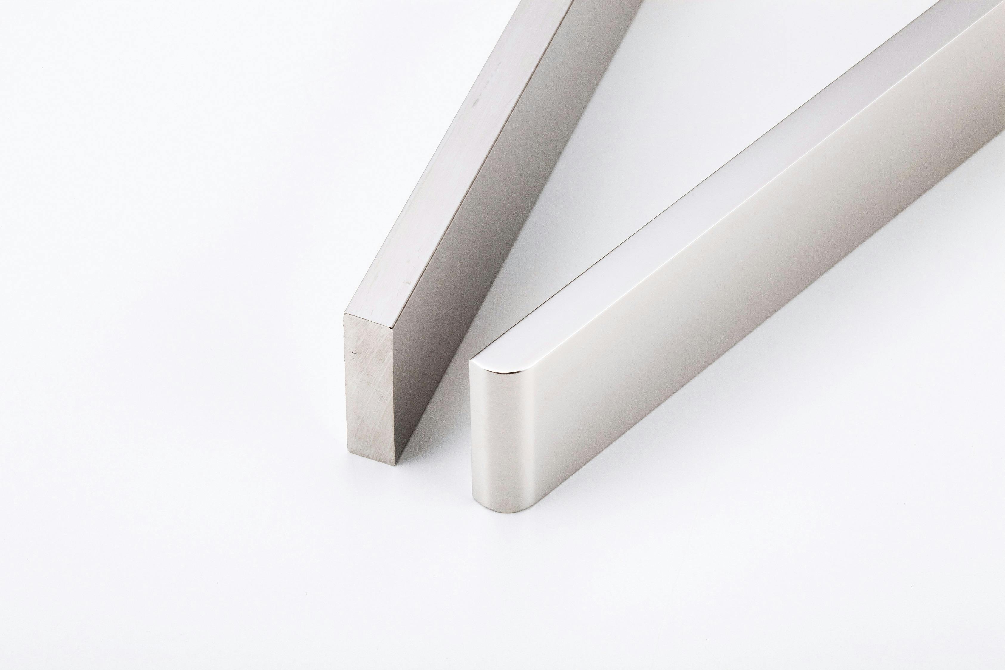 シルバーのステンレス部分には上品に艶をおさえた磨きを施しています。磨き工程は全て手作業でおこなわれ、燕三条の職人の技術力の高さが感じられます。ピカピカに光沢ある鏡面仕上げより、均一に艶を整える艶消し磨きは難易度が高い磨きになります。金属加工で難しかった点の1つが下記写真のような丸み加工です。シンプルな加工ですが、全てを高精度で均一にするために金型技術を応用して加工しました。
