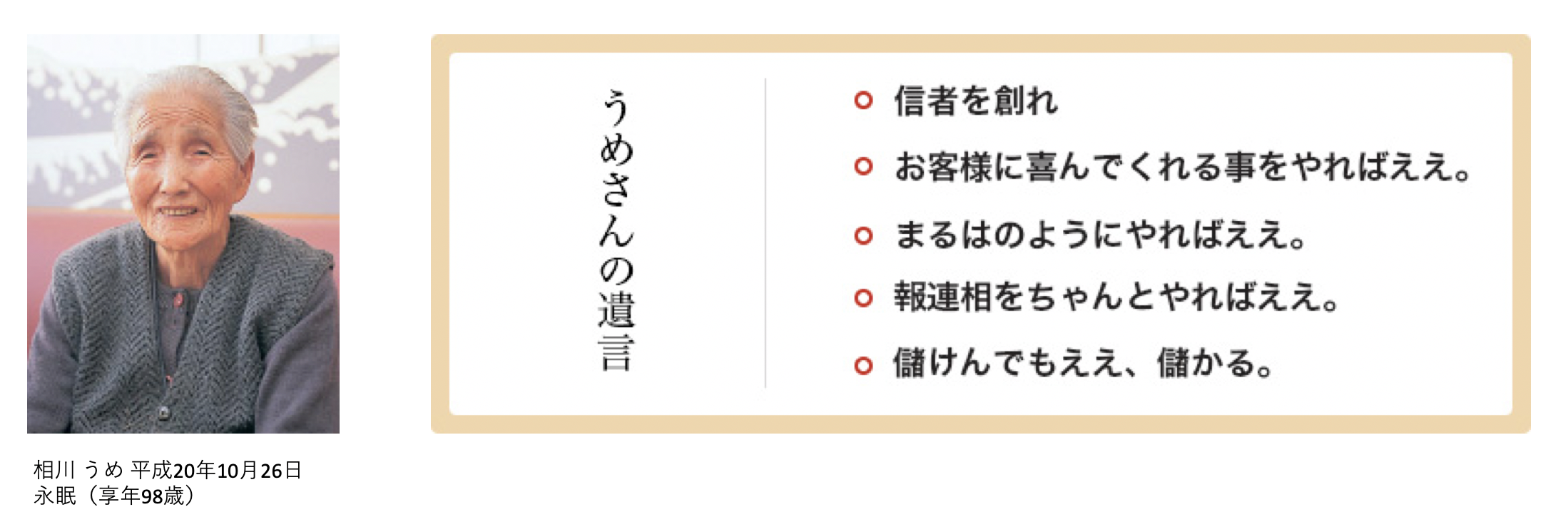 創業者の相川うめさんは、明治44年(1911年)生まれ。