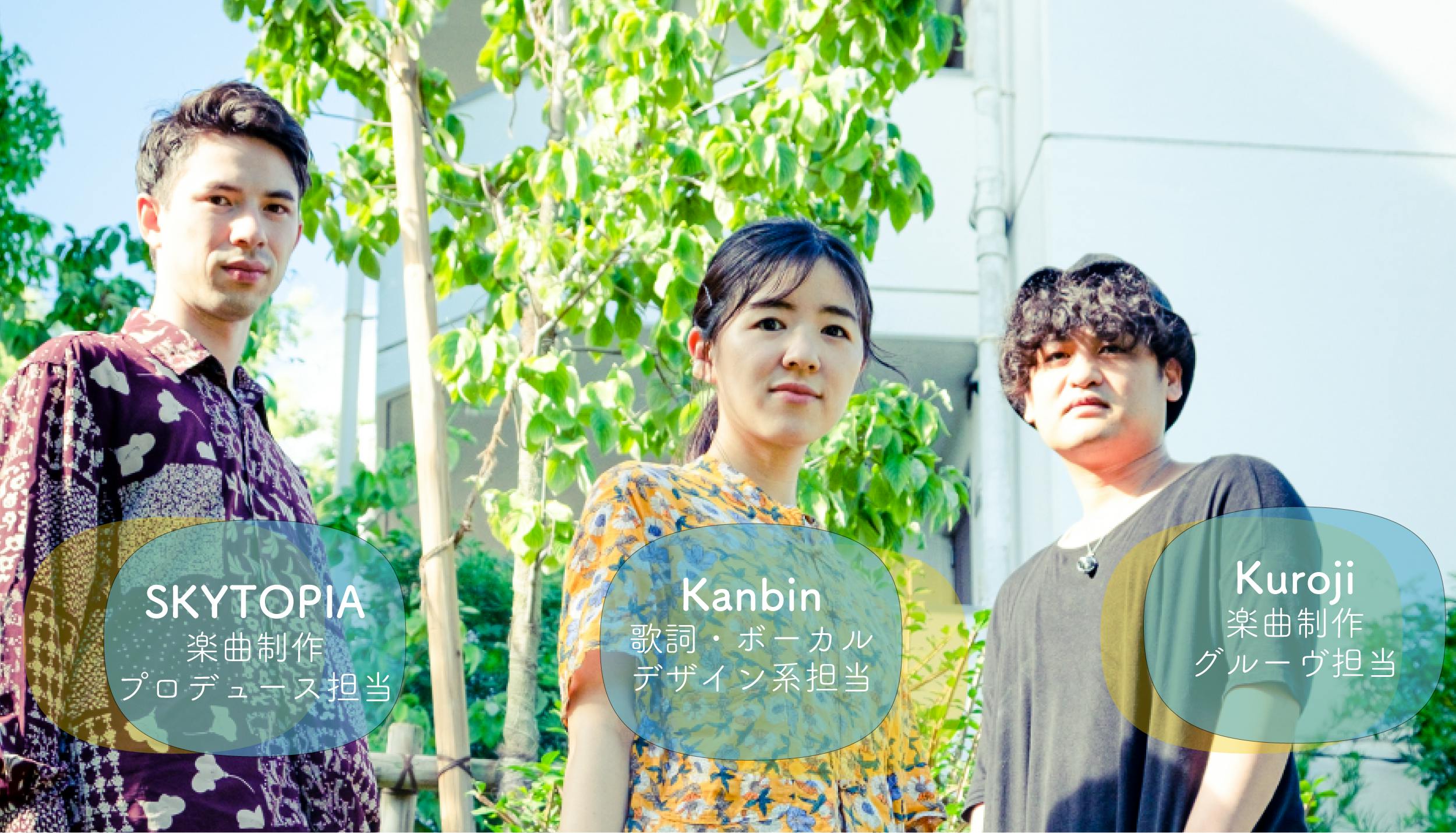 2021年のコロナ禍に活動を開始しこれまでにシングルを11作、EPを2作制作してきました。活動開始当初はKanbinが高知、SKYTOPIAが東京の2人によるリモート体制でした。その後Kurojiが加入、Kanbinも東京へ戻りますが今年の1月より今度はKanbinは台湾へ!さまざまなツールをフル活用しリモートも併せて楽曲制作を続けています。